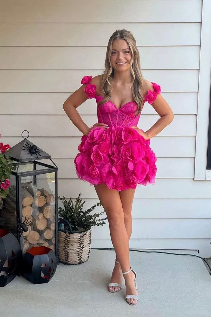 loveedsTM-Pink short flower tube top dress-vx