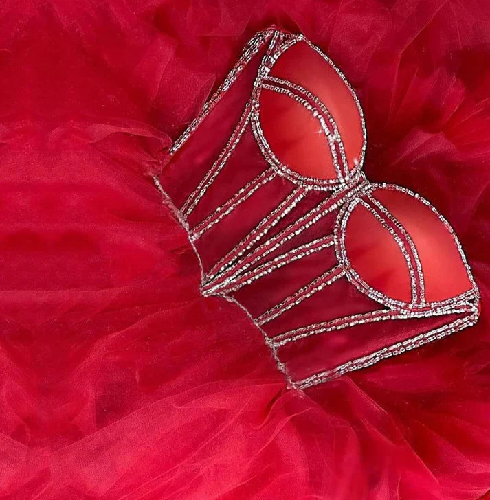 Pink Sparkling A-Line Long Beaded Elegant Halter Neck tulle Ball Gown Evening Dress gh3295