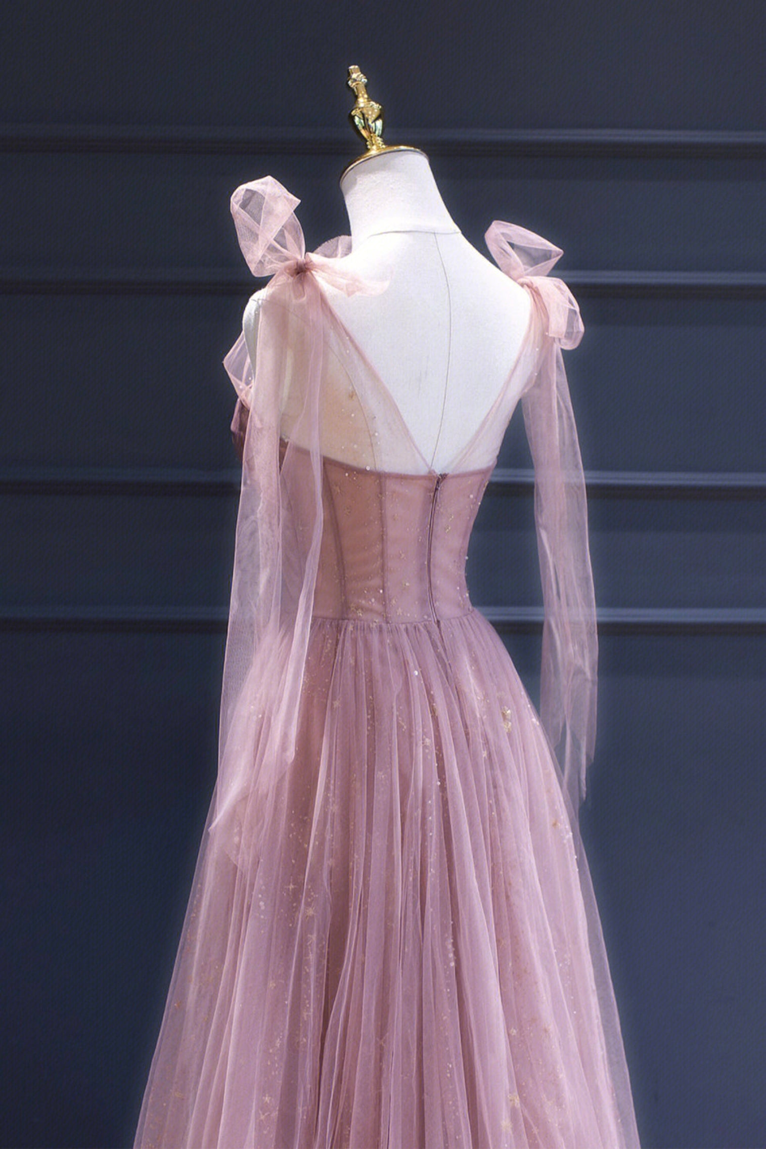 Pink Tulle Long A-Line Prom Dress, Pink Evening Dress with Corset
