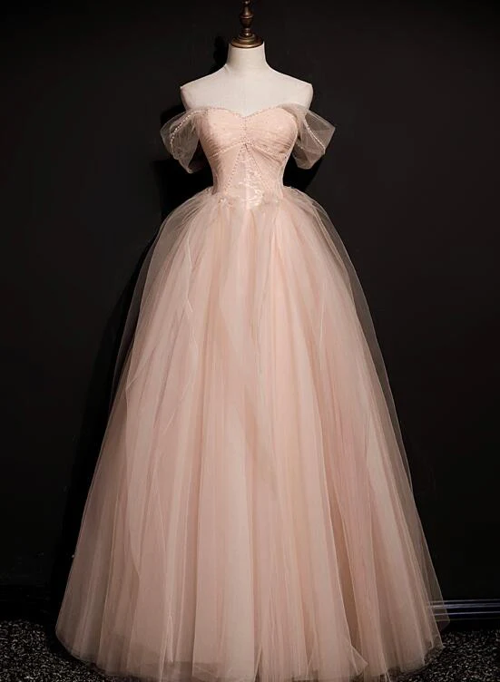 Pink Tulle Princess Beaded And Lace Long Formal Dress, Pink Party Dress Evening Dress gh90