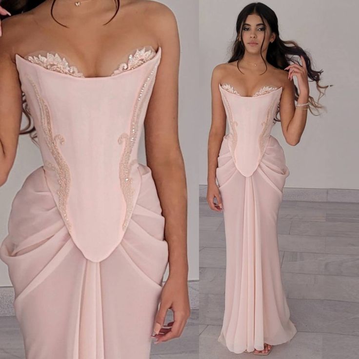 Pink vintage elegant beaded chiffon evening dress fg7371