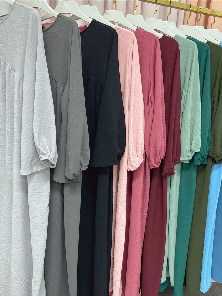 loveedsTM- Plain Abaya Muslim Long Dress for Women Ramadan Eid Balloon Sleeve Islamic Jilbab African Dresses Dubai Turkish Modesty Kaftan