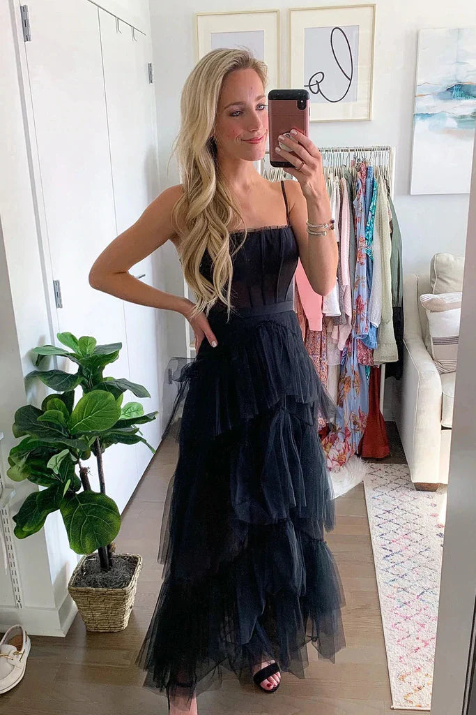 PM095,Pink Spaghetti Straps Floor Length Prom Dress With Ruffles, Tulle Formal Gown