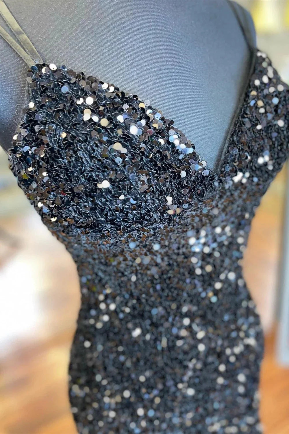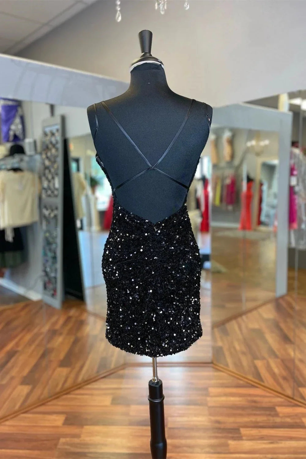 PM136,Sparkle Black Sequined Homecoming Dresses Cross Back Mini Graduation Dresses