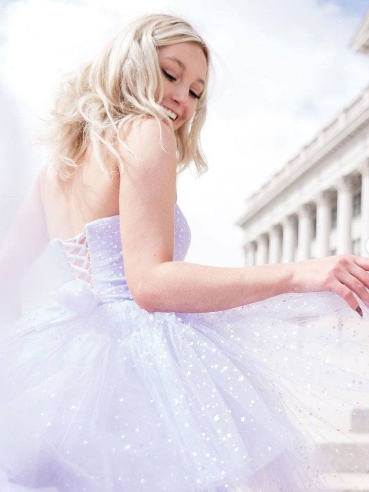 PM465, Purple tulle high low prom dress, light purple evening dress