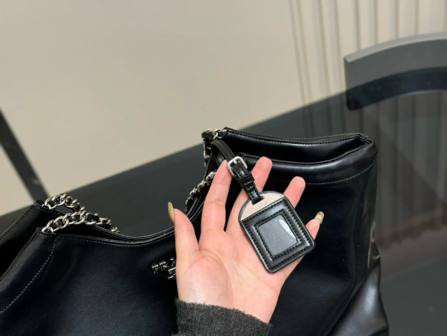 Prada Double Chain Black Shoppping Tote Bag 39x30cm