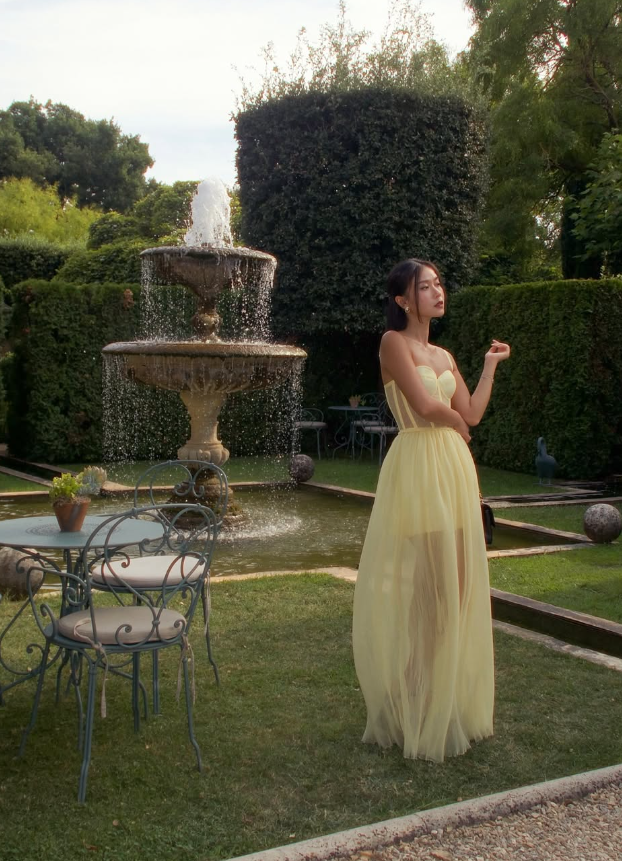Pretty A Line Spaghetti Strap Corset Light Yellow Tulle Prom Dress Evening Dress SH2210