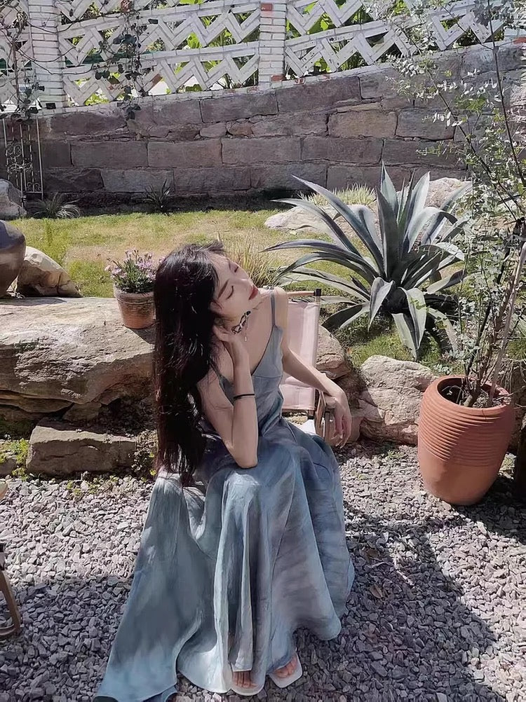 Pretty A line Spaghetti Straps Blue Long Prom Dresses Birthday Dress For Women SD243
