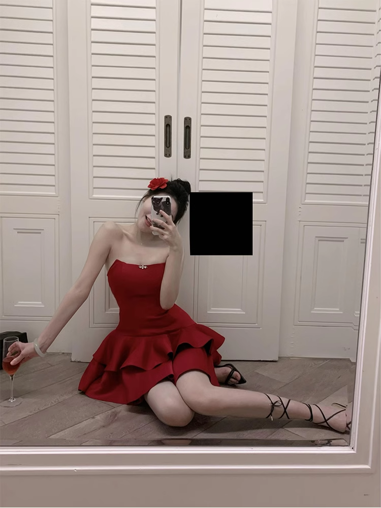Pretty A line Strapless Red Dinner Dress Hoco Dresses Short Birthday Outfits SD267