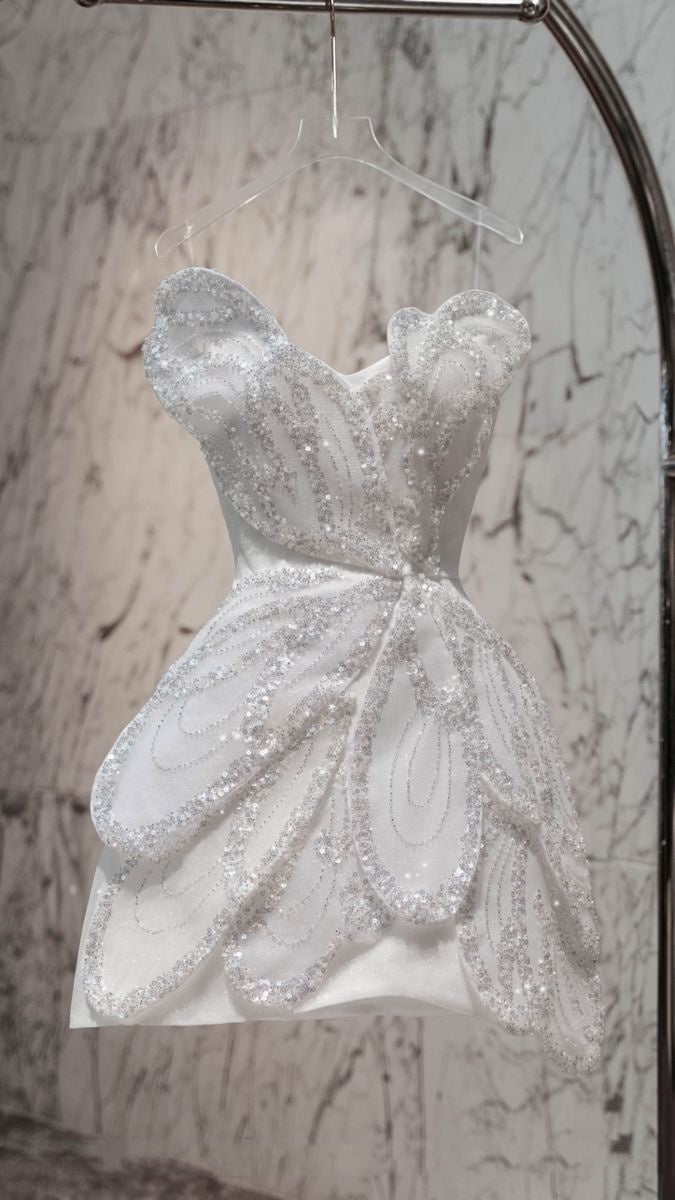Pretty A line Sweetheart White Sequin Short Formal 8th Grade Homecoming Dresses Summer Middle School Hoco Dress 6th Grade Graduation Outfits DH446