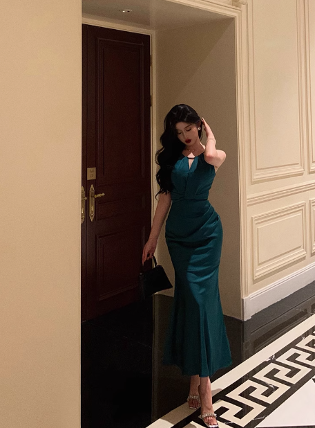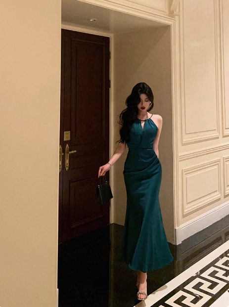 Pretty Mermaid Halter Neckline Green 18th Birthday Dress Party Outfits Birthday Outfits For Women DP0173