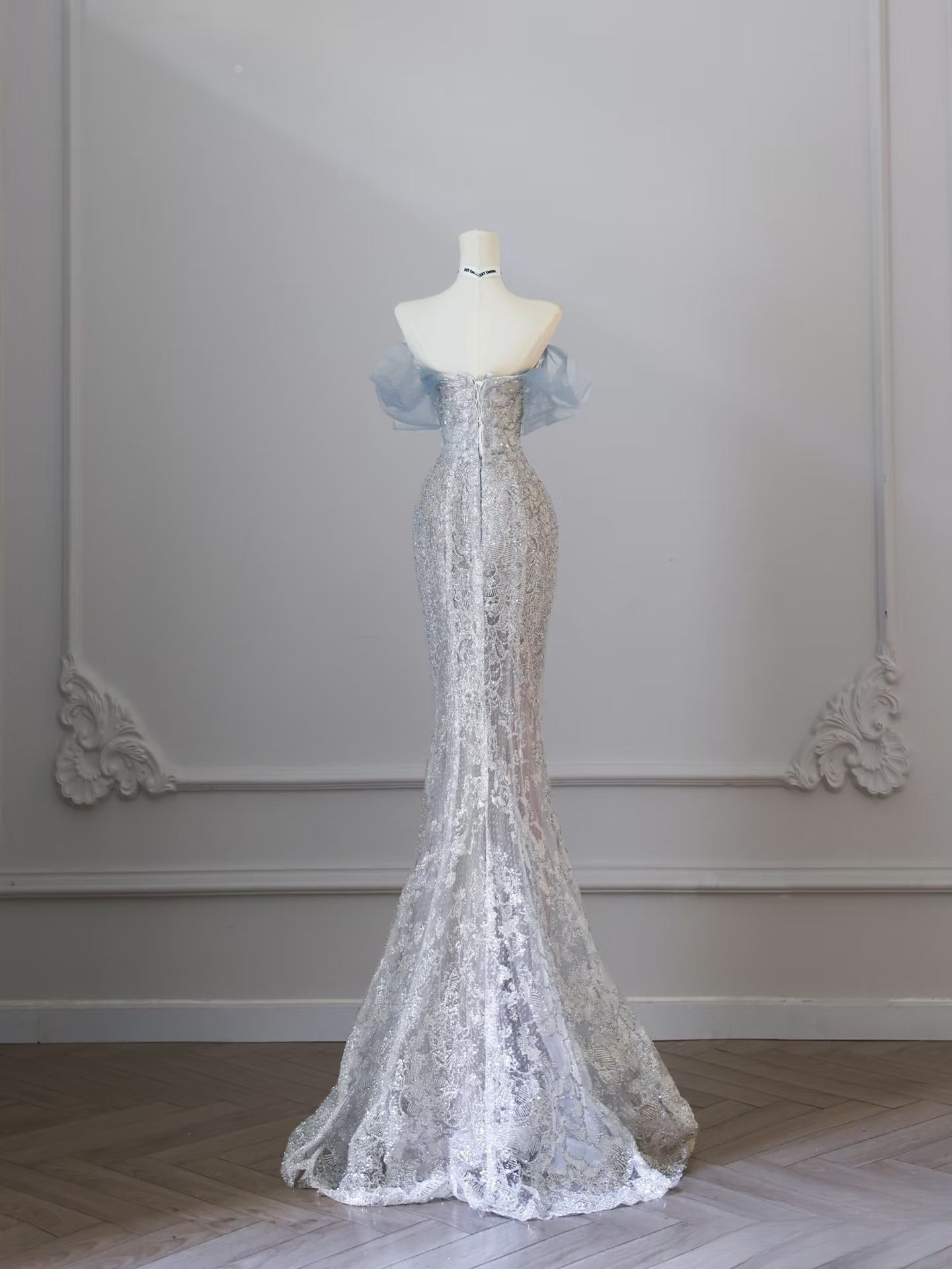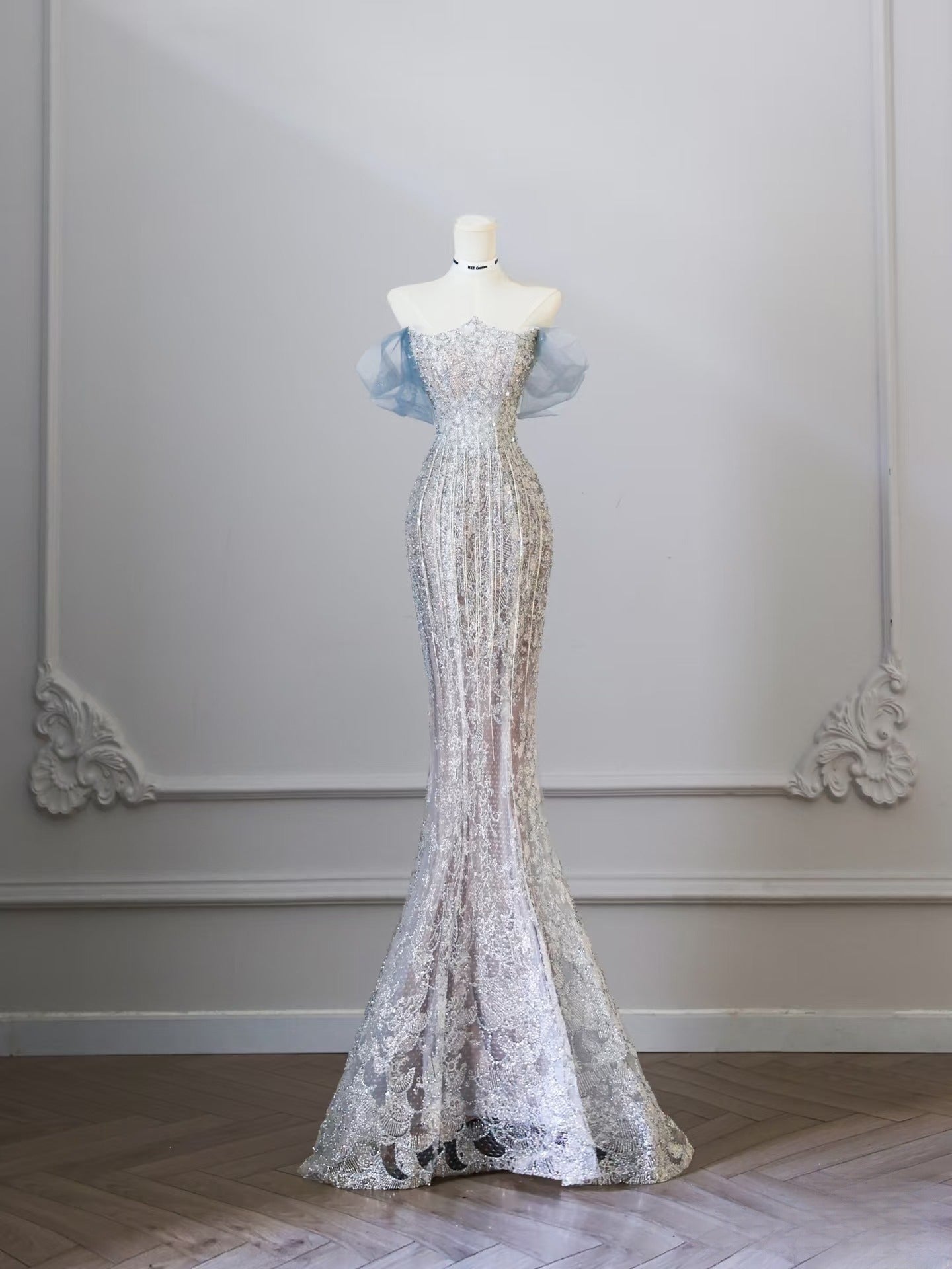Pretty Mermaid Off The Shoulder Sequin Blue Long Prom Dresses Evening Gowns SD2320