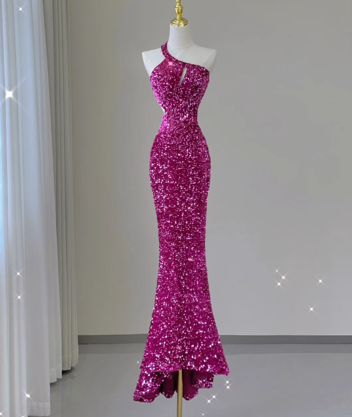 Pretty Mermaid One Shoulder Sequin Sleeveless Long Prom Dresses Evening Dresses DP469