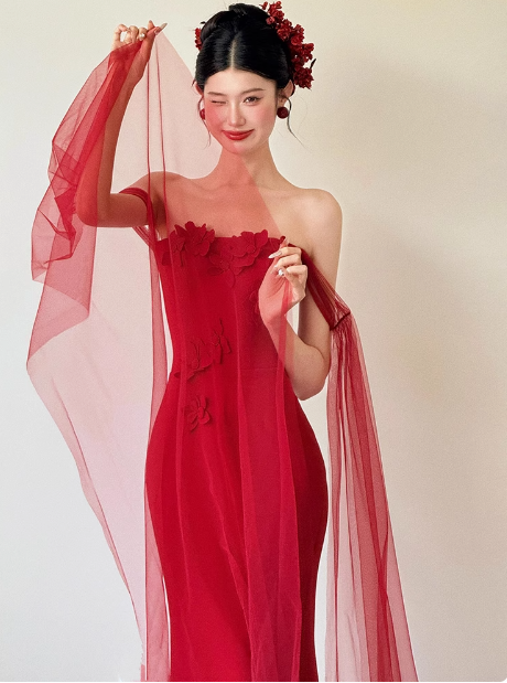 Pretty Mermaid Strapless Burgundy Prom Dresses Formal Summer Wedding Guest Dresses Wedding Guest Outfits DP2263