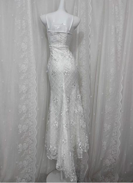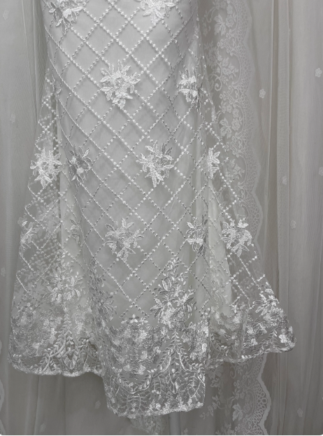 Pretty Mermaid White Embroidered Strapless Mermaid Prom Dress P3461