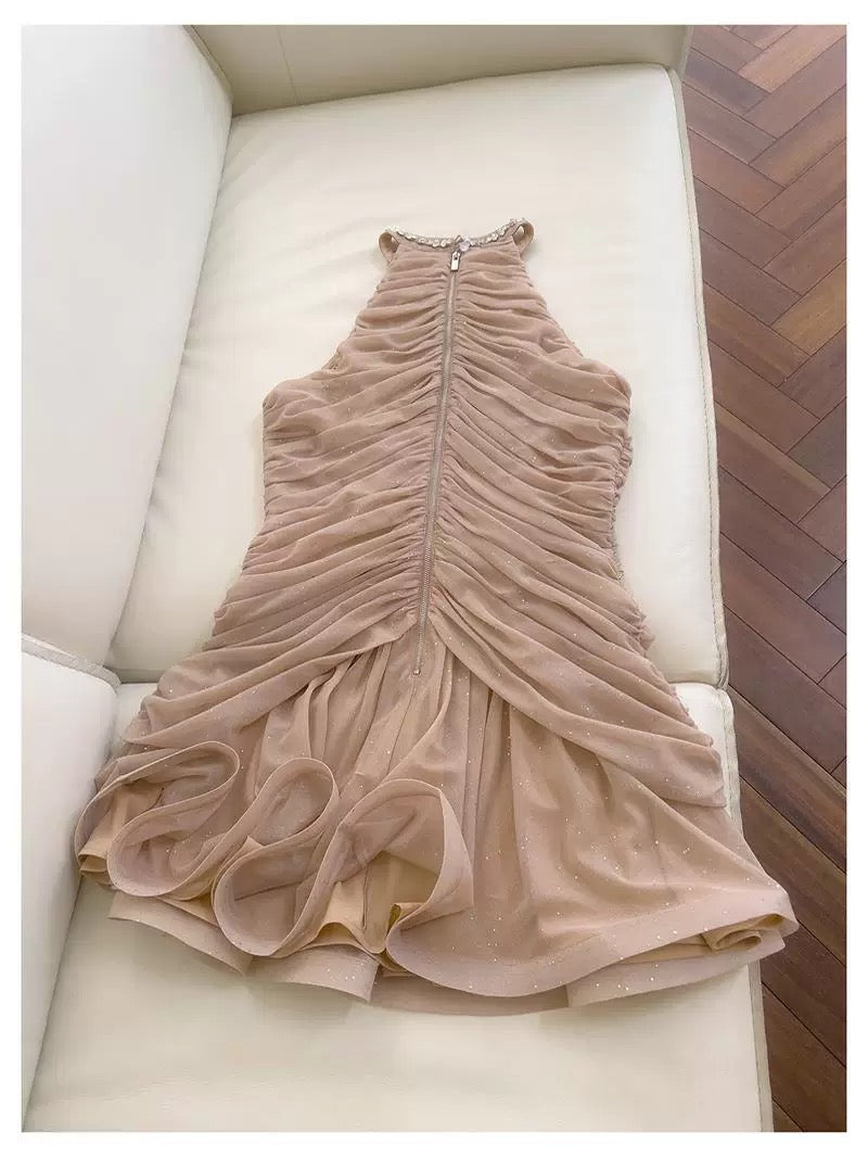 Pretty Sheath High Neck Champagne Summer 16th Birthday Dresses For Teens Hoco Dress Mini 18th Birthday Outfit Cocktail Dresses For Women W914
