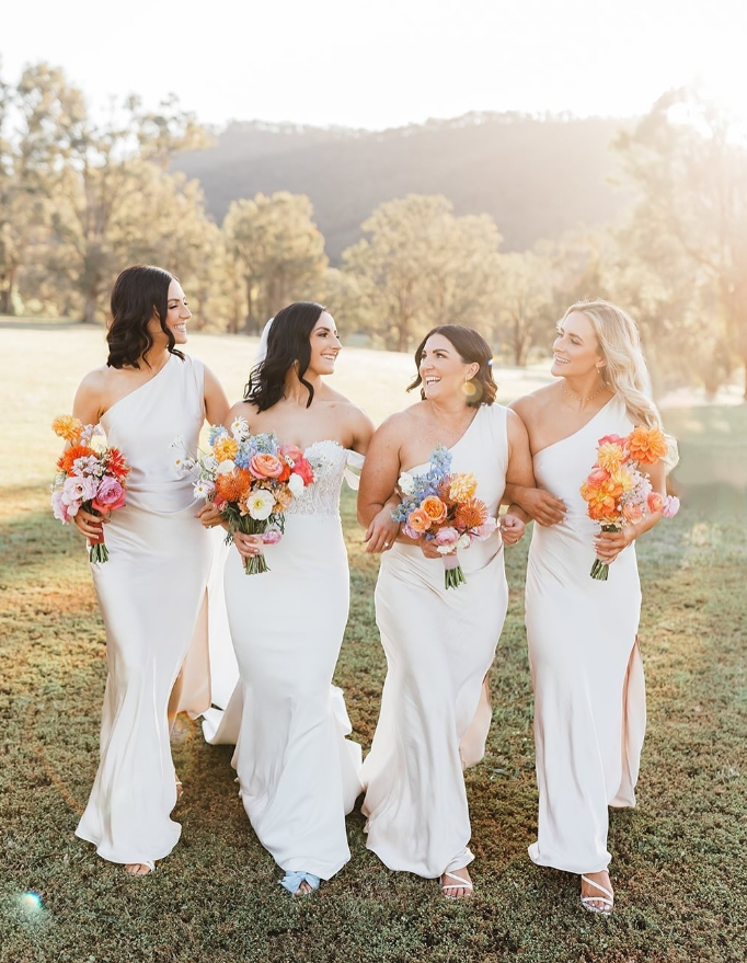 Pretty Sheath One Shoulder Ivory Satin Bridesmaid Dress Evening Dress with Slit SH3205