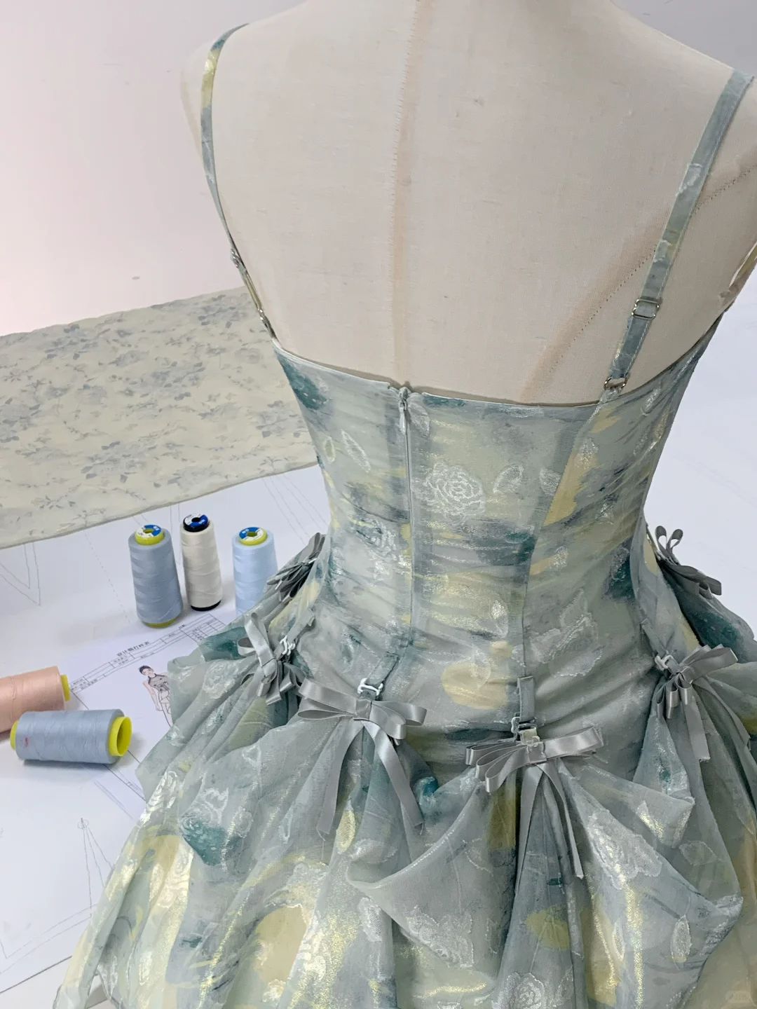 Pretty Spaghetti Straps Blue Chiffon Print Floral A Line Short Party Dress Formal Homecoming Dress S892