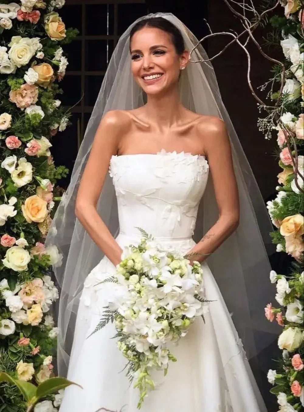 Pretty Wedding Dress Ball Gown Strapless Satin White Long Wedding Dresses Bridal Gowns DP1816