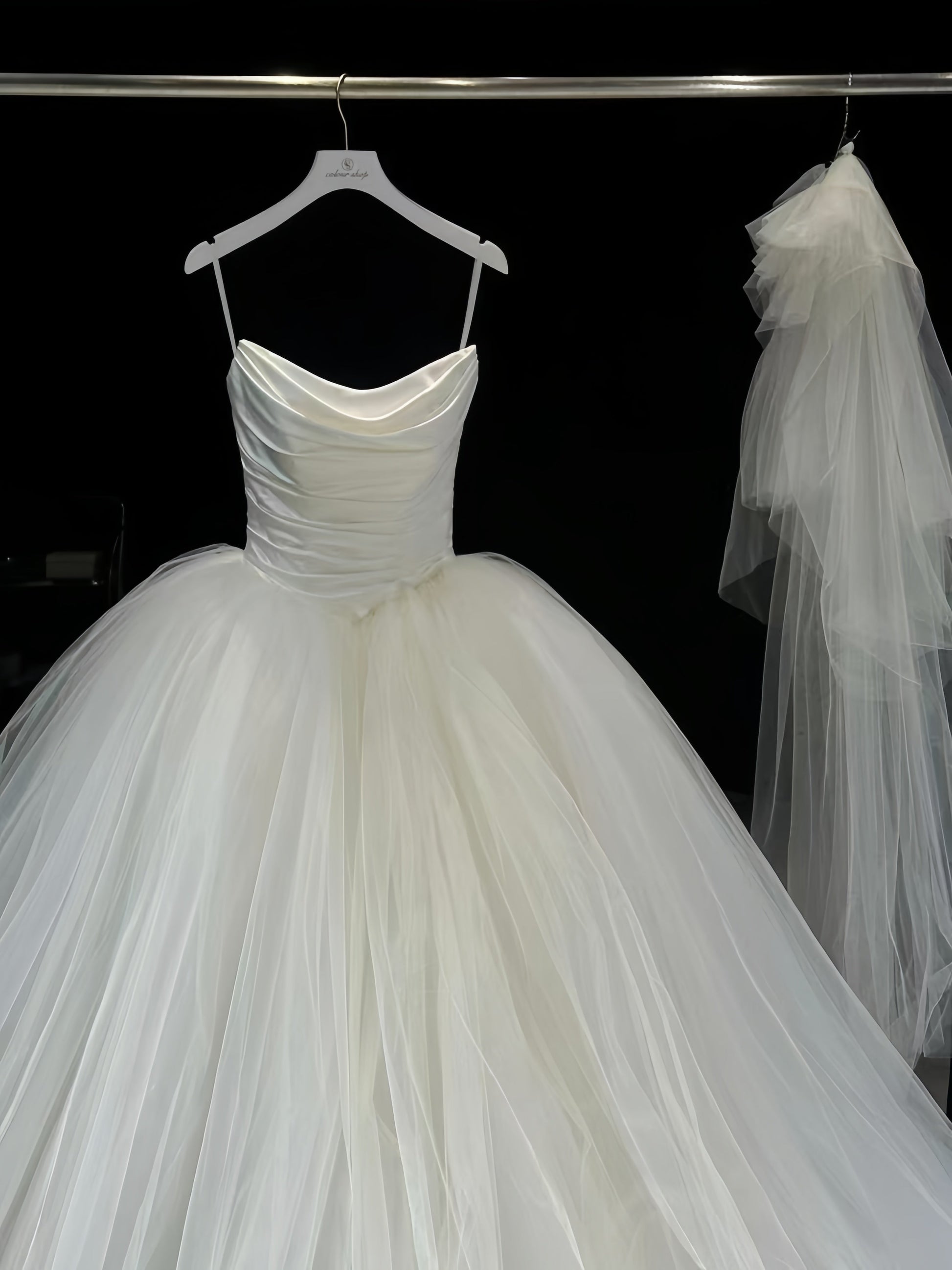 Pretty Wedding Dress Ball Gown Strapless Tulle Long Satin White Wedding Dresses Bridal Gowns Brides Gown DH106
