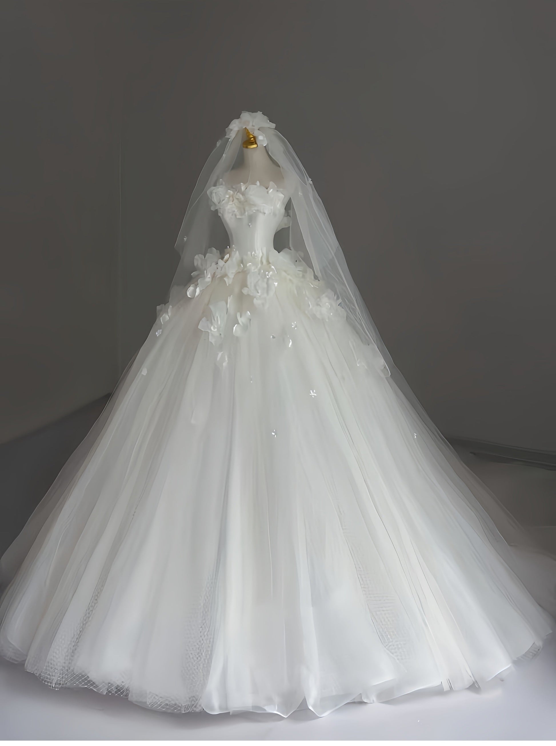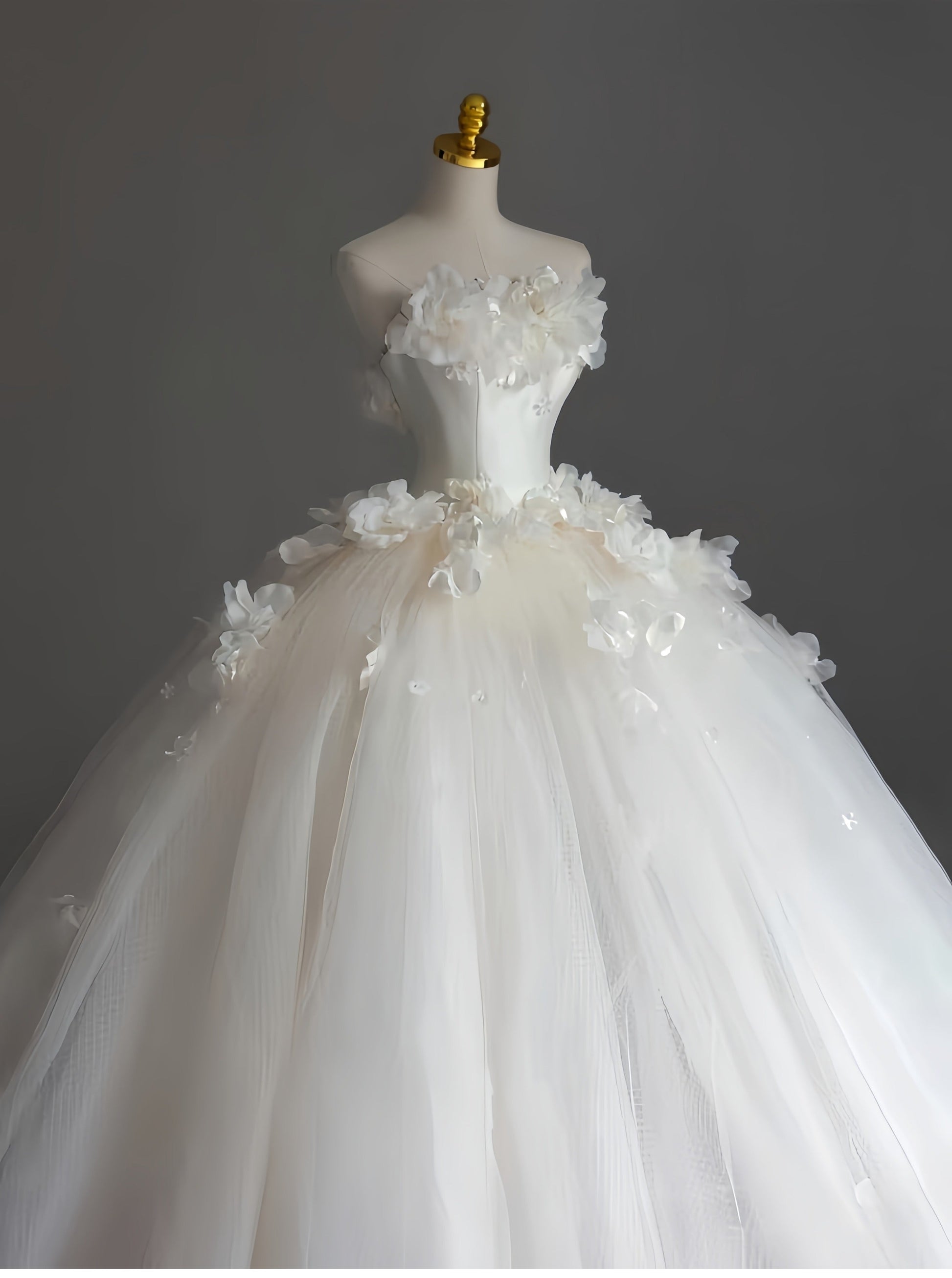 Pretty Wedding Dress Ball Gown Strapless White Long Tulle Wedding Dresses Bridal Gowns Brides Gown DH112