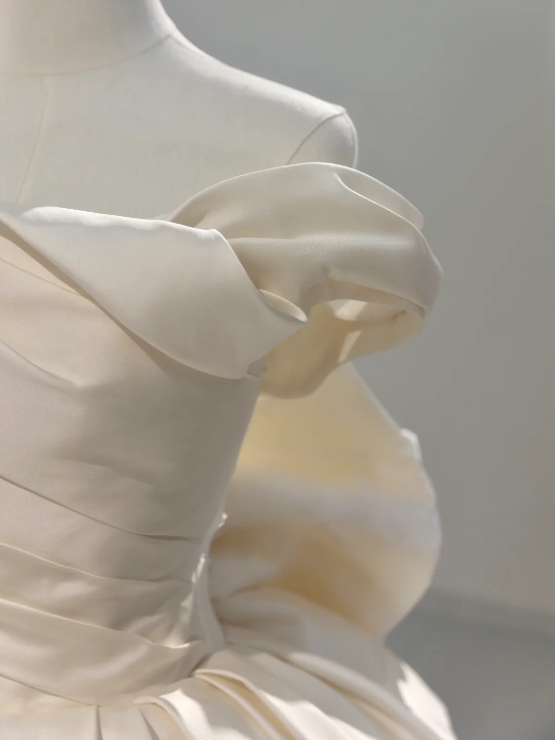Princess Bridal Dress Ball Gown Off The Shoulder Ivory Satin Wedding Dress With Pleated Wedding Dresses Modest Wedding Gowns DH2047