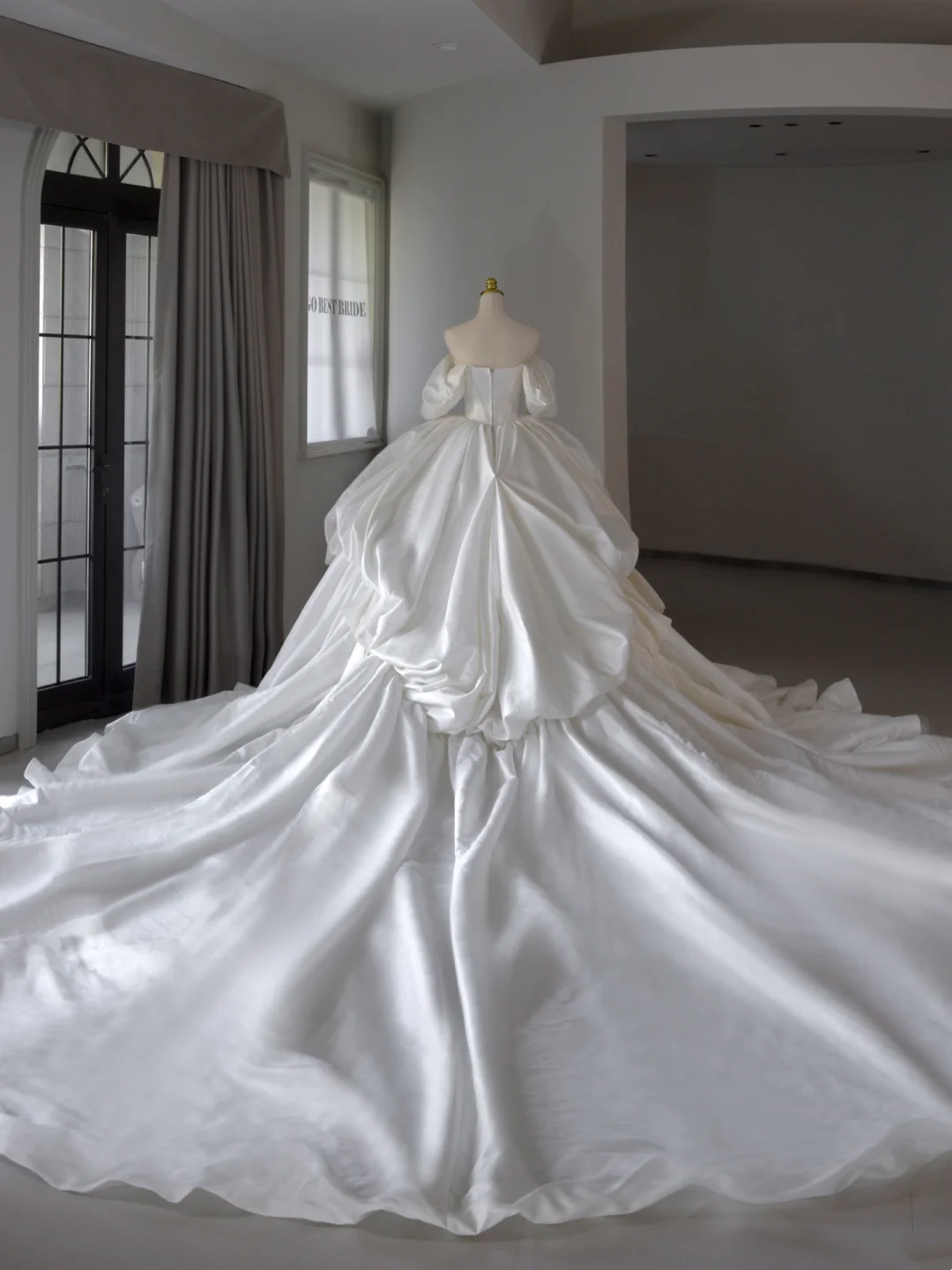 Princess Bridal Dress Ball Gown Off The Shoulder Satin Wedding Dress With Short Sleeves Wedding Dresses Modest Wedding Gowns DH1544