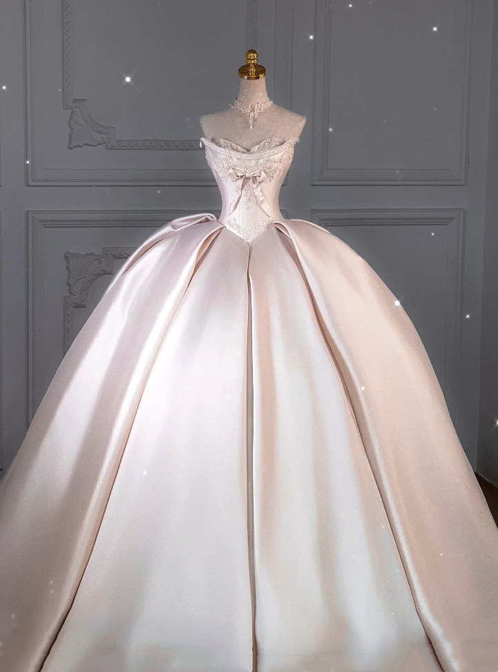 Princess Bridal Dress Ball Gown Sweetheart Sleeveless Satin Light Pink Wedding Dresses Pretty Bridal Gowns DH943