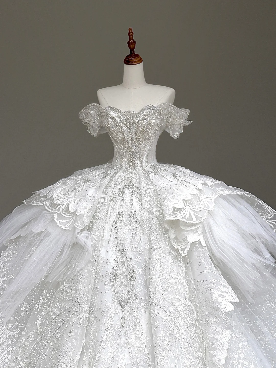 Princess Bridal Gown Ball Gown Off The Shoulder White Sequin Beads Wedding Dresses Winter Bridal Gowns DP875