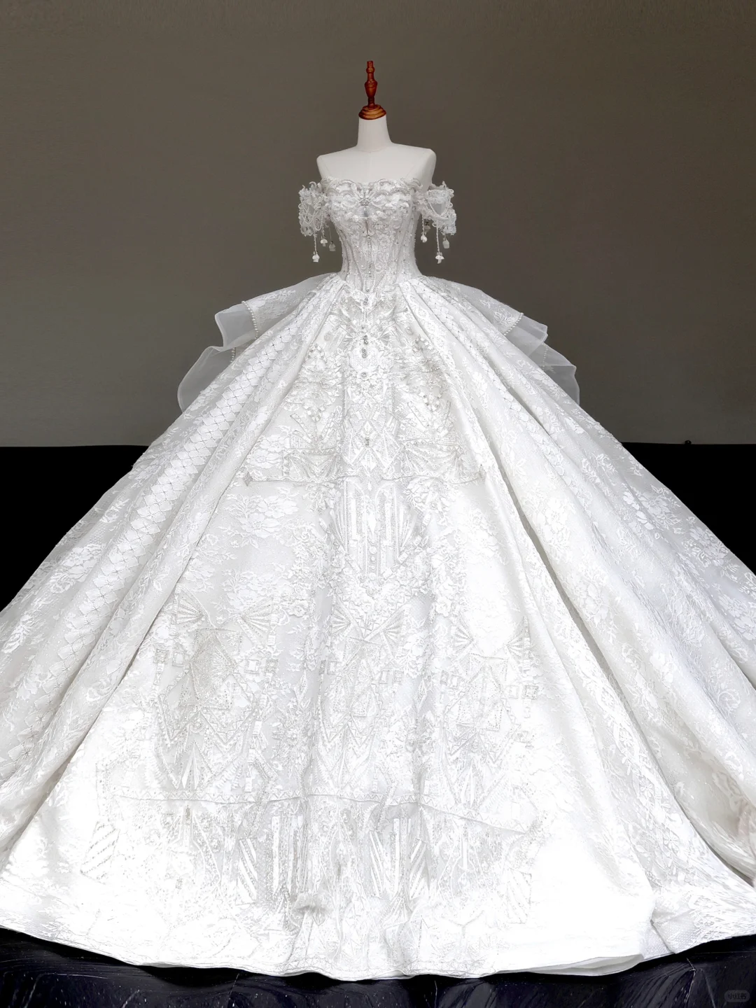 Princess Bridal Gown Ball Gown Strapless White Sequin Beads Wedding Dresses Bridal Gowns DP883