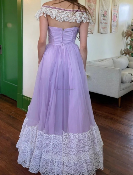 Princess Purple Vintage Lace Patchwork Front Open A-line Prom Dress P3379