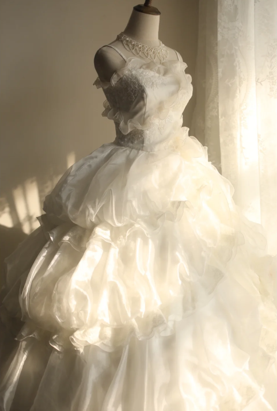 Princess skirt irregular pleated white cake puffy wedding dress P2865