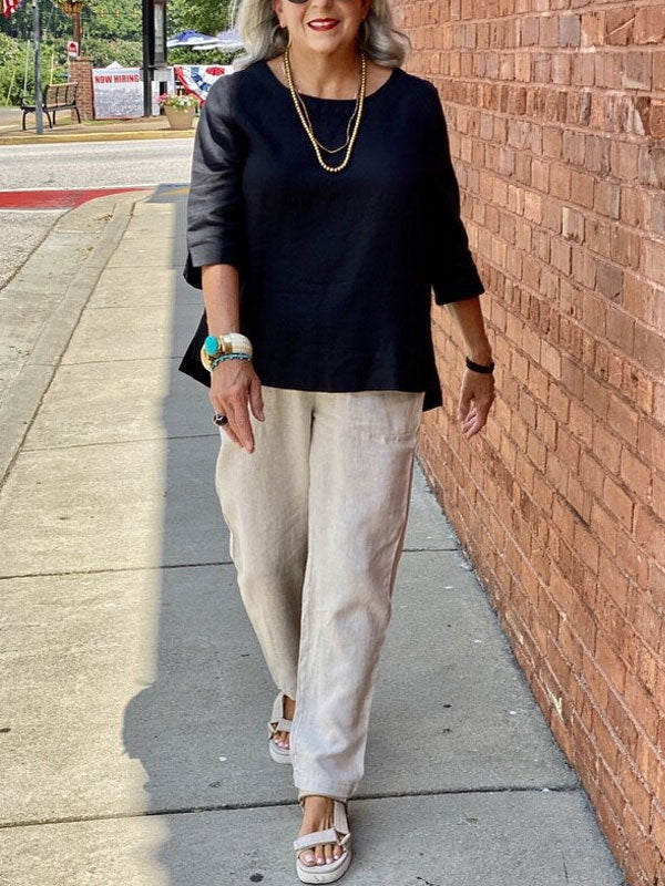 Pullover Cotton and Linen Elegant Ladies Shirt