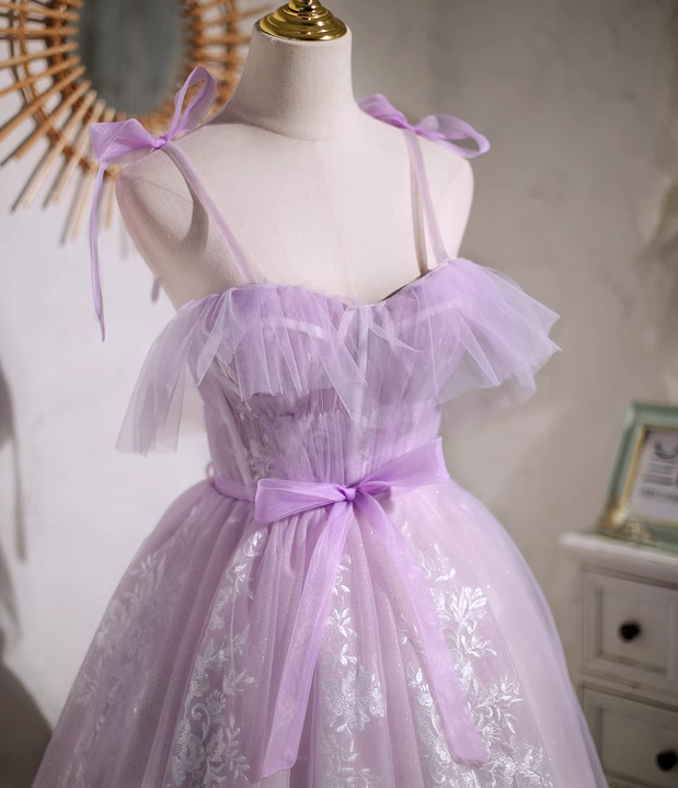 Purple A-line sweetheart neckline tulle lace short prom dress, purple homecoming dress ED01157