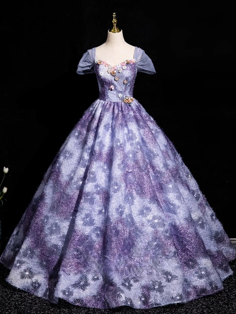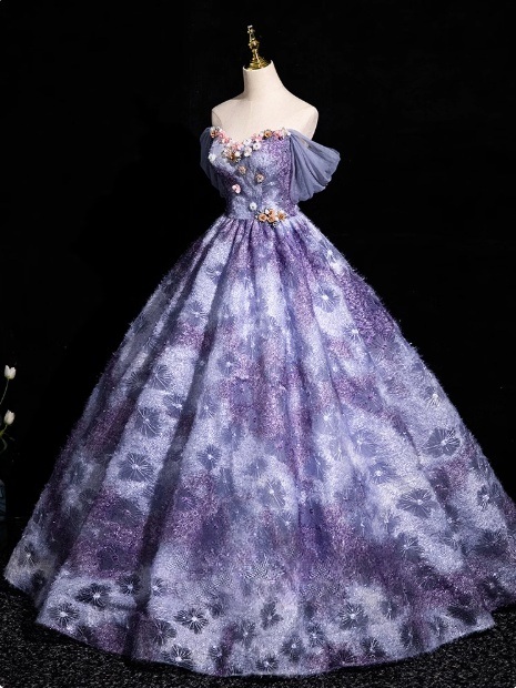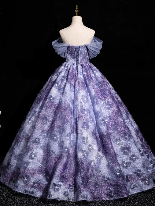 Purple Elegant A-line Off-shoulder Long Prom Dress, Purple Long Formal Dress ED01214