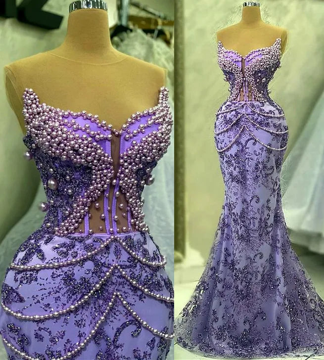 Purple Mermaid Evening Dress Beaded Formal Prom Gown fg7065