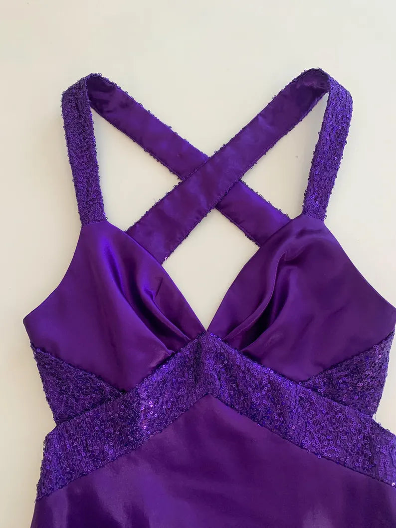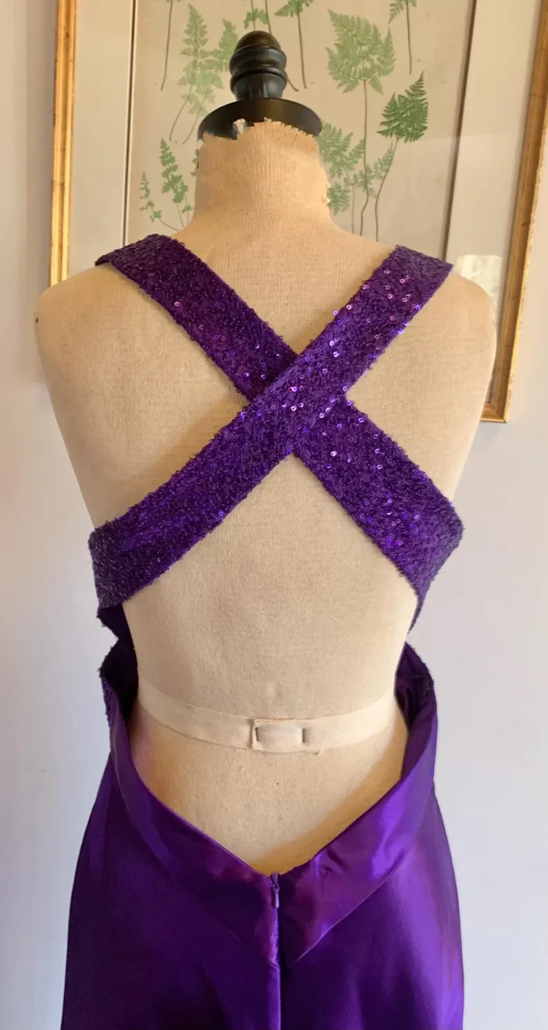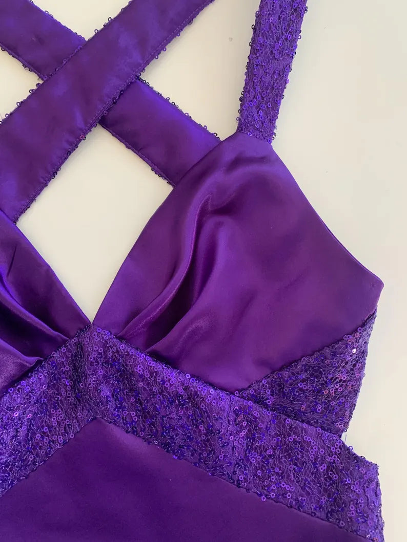 Purple Retro Fashion V-neck Elegant Exquisite Sequined Long Floor Length Satin Ball Gown Evening Dress Party; Dress gh3448
