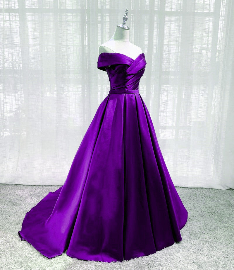 Purple Satin Off Shoulder Long Evening Dress Prom Dress, Purple A-line Party Dresses fg4593