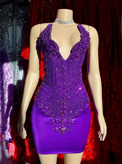 Purple Sheath Short Prom Dresses, Lace Up Homecoming Dresses fg5235