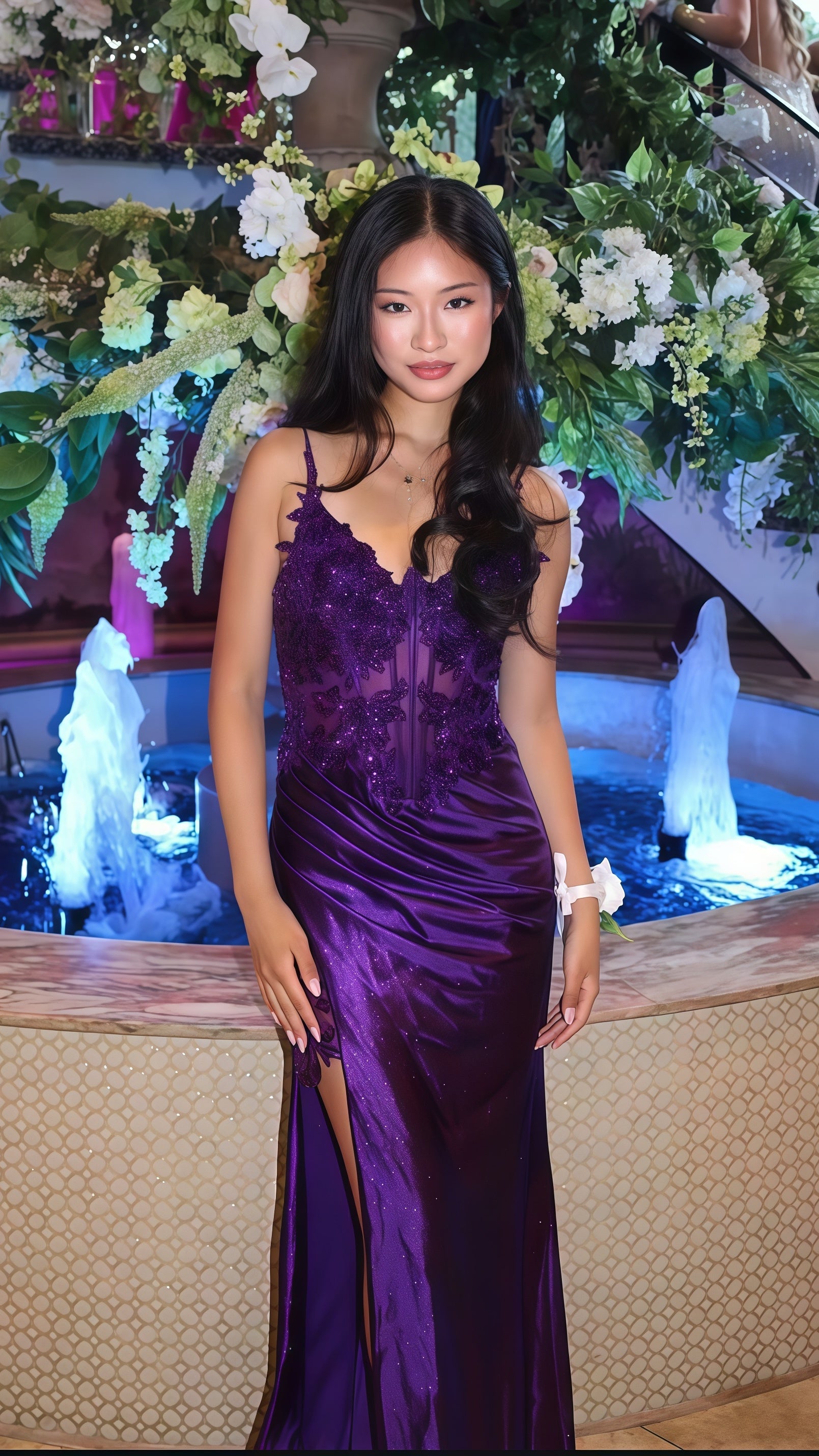 Purple V-neck Appliques Lace Party Dress With Side Slit