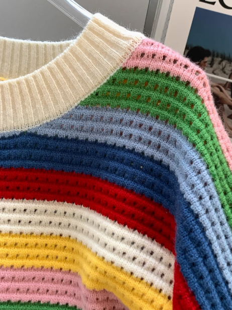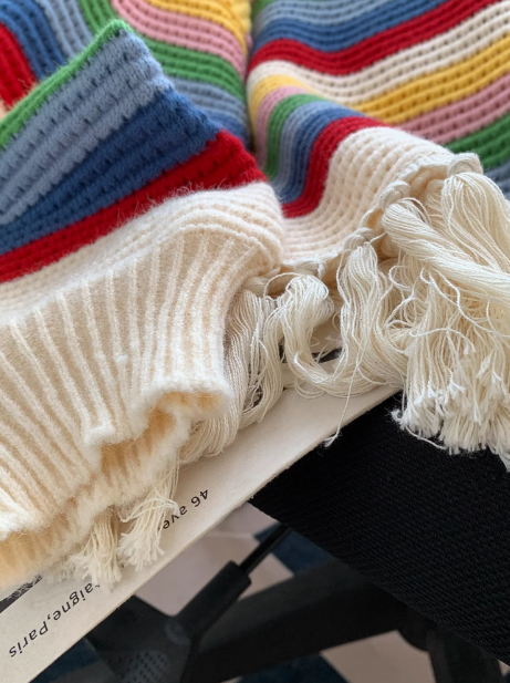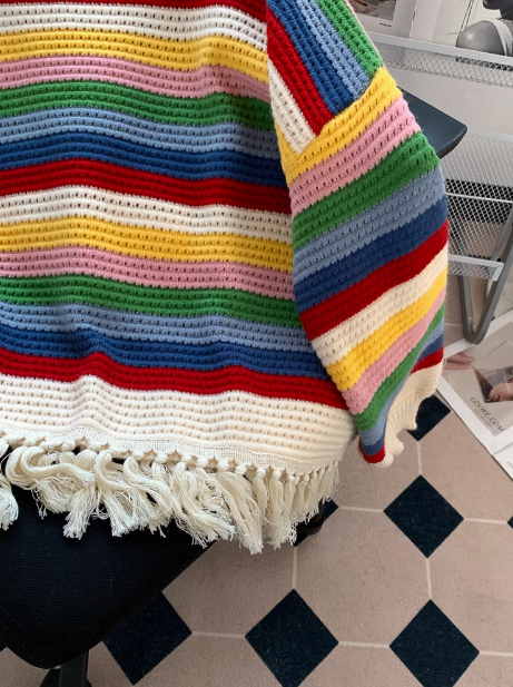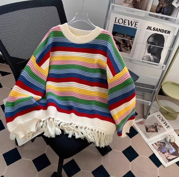 Rainbow Stripe Fringe Loose Crewneck Sweater ED0195