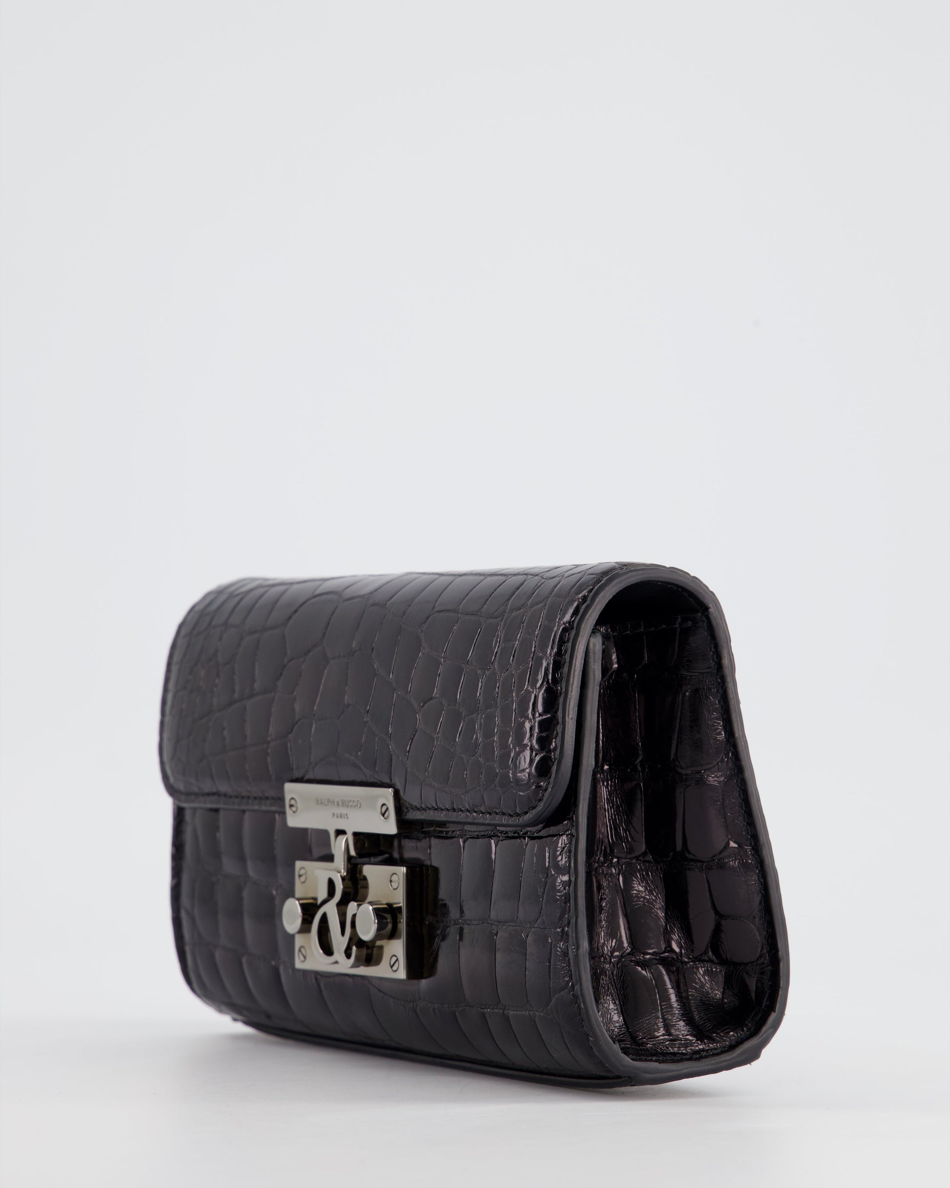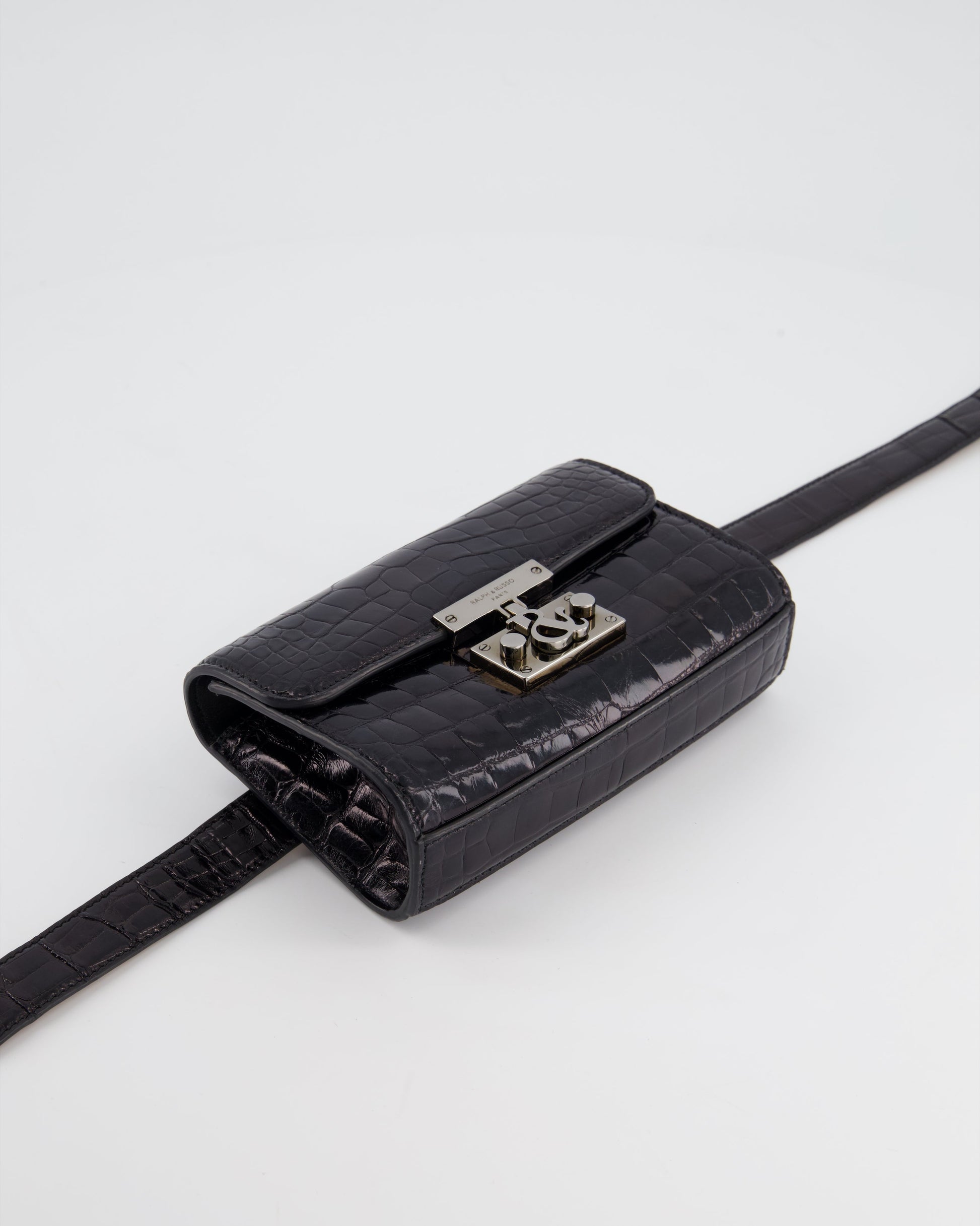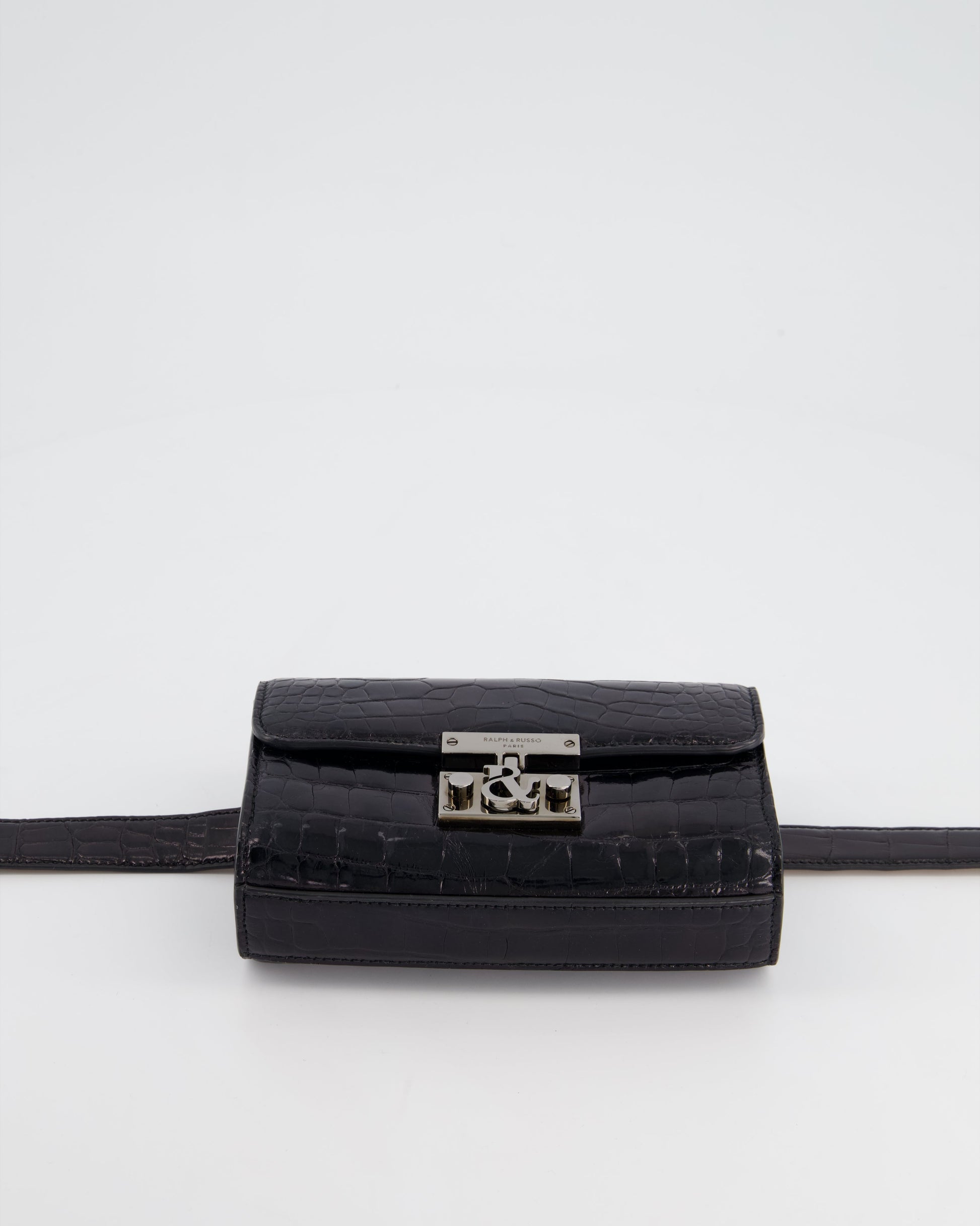 Ralph & Russo Black Croc Belt Bag with Gunmetal Hardware