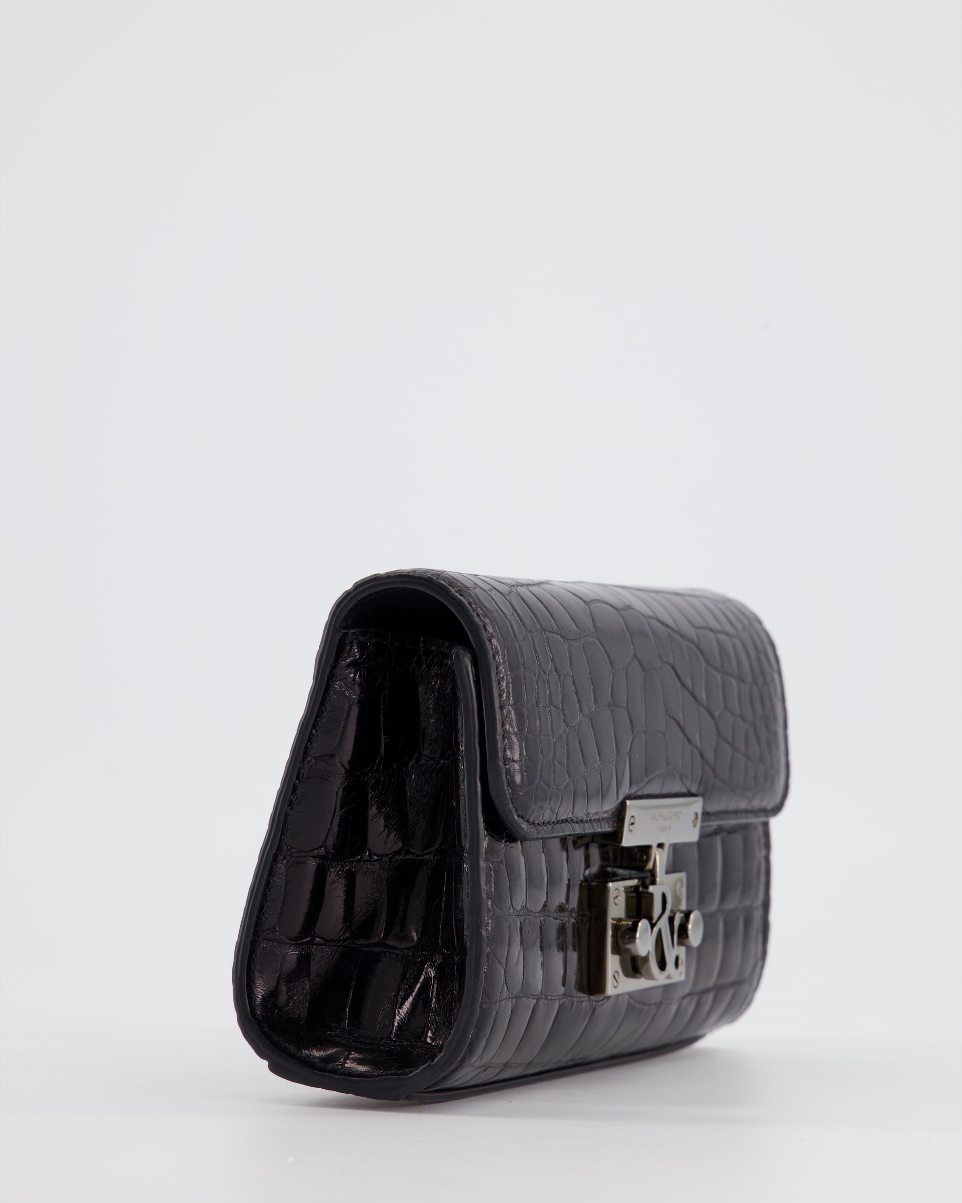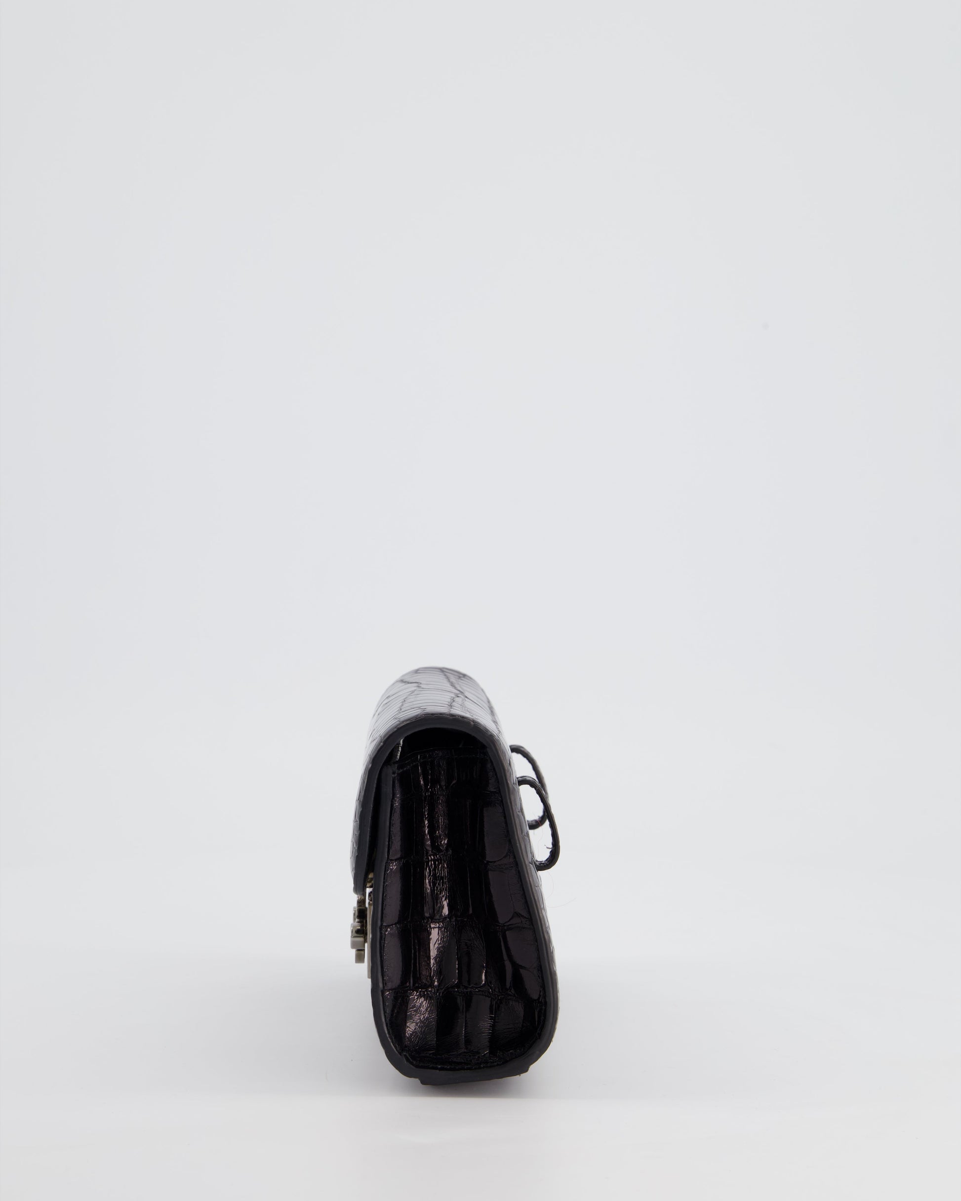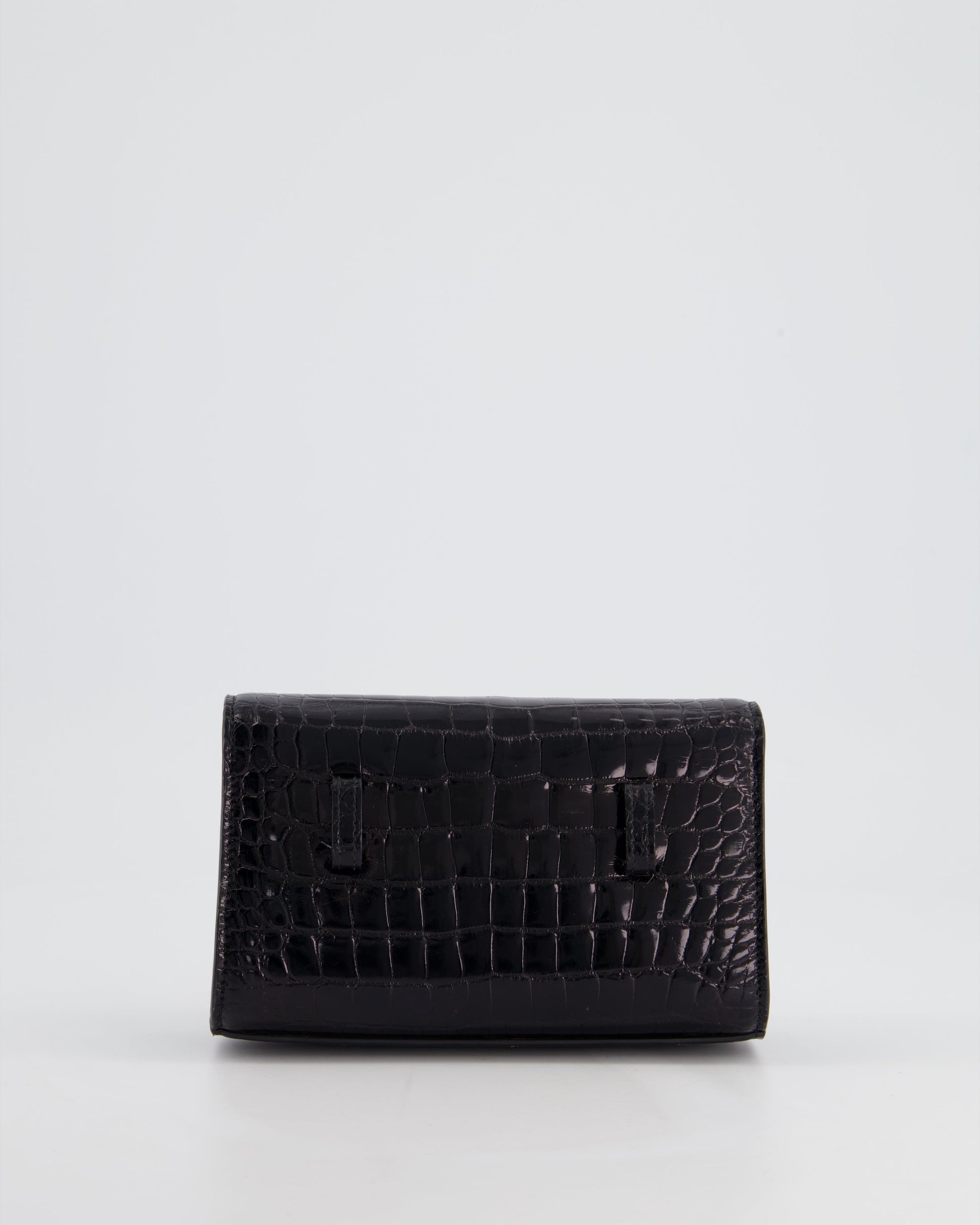 Ralph & Russo Black Croc Belt Bag with Gunmetal Hardware