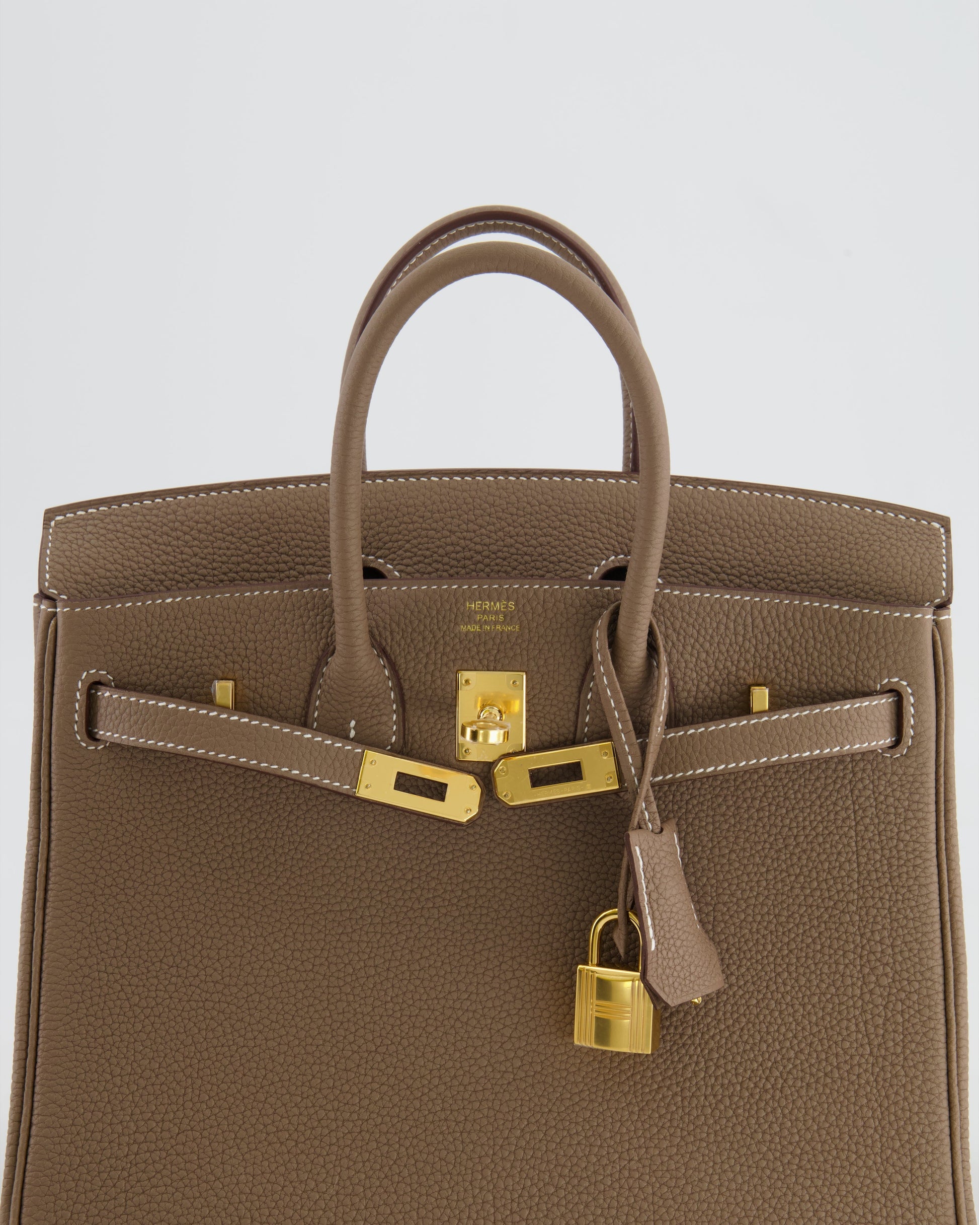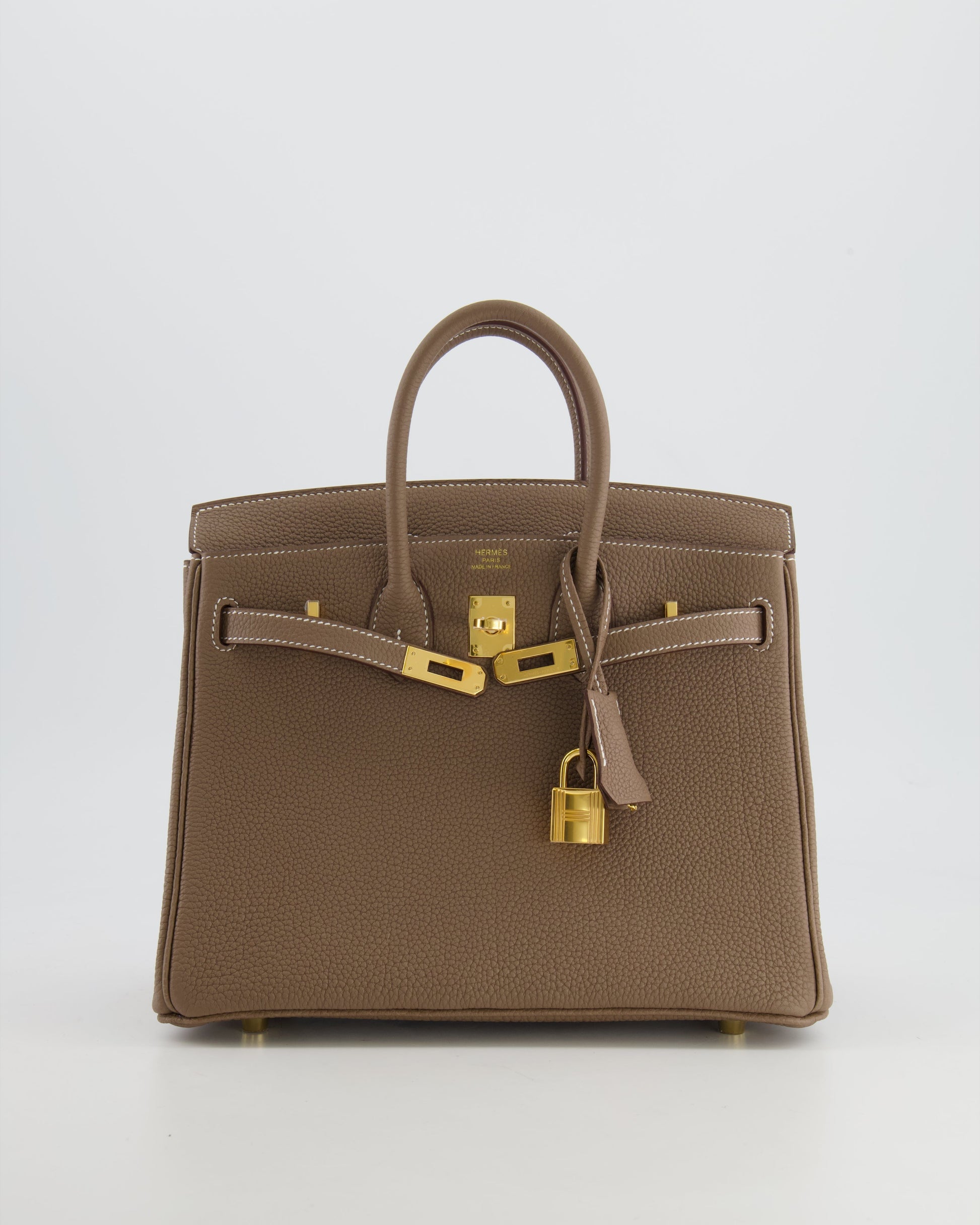 *RARE* Hermès Birkin 25cm Retourne Bag in Etoupe Togo Leather with Gold Hardware