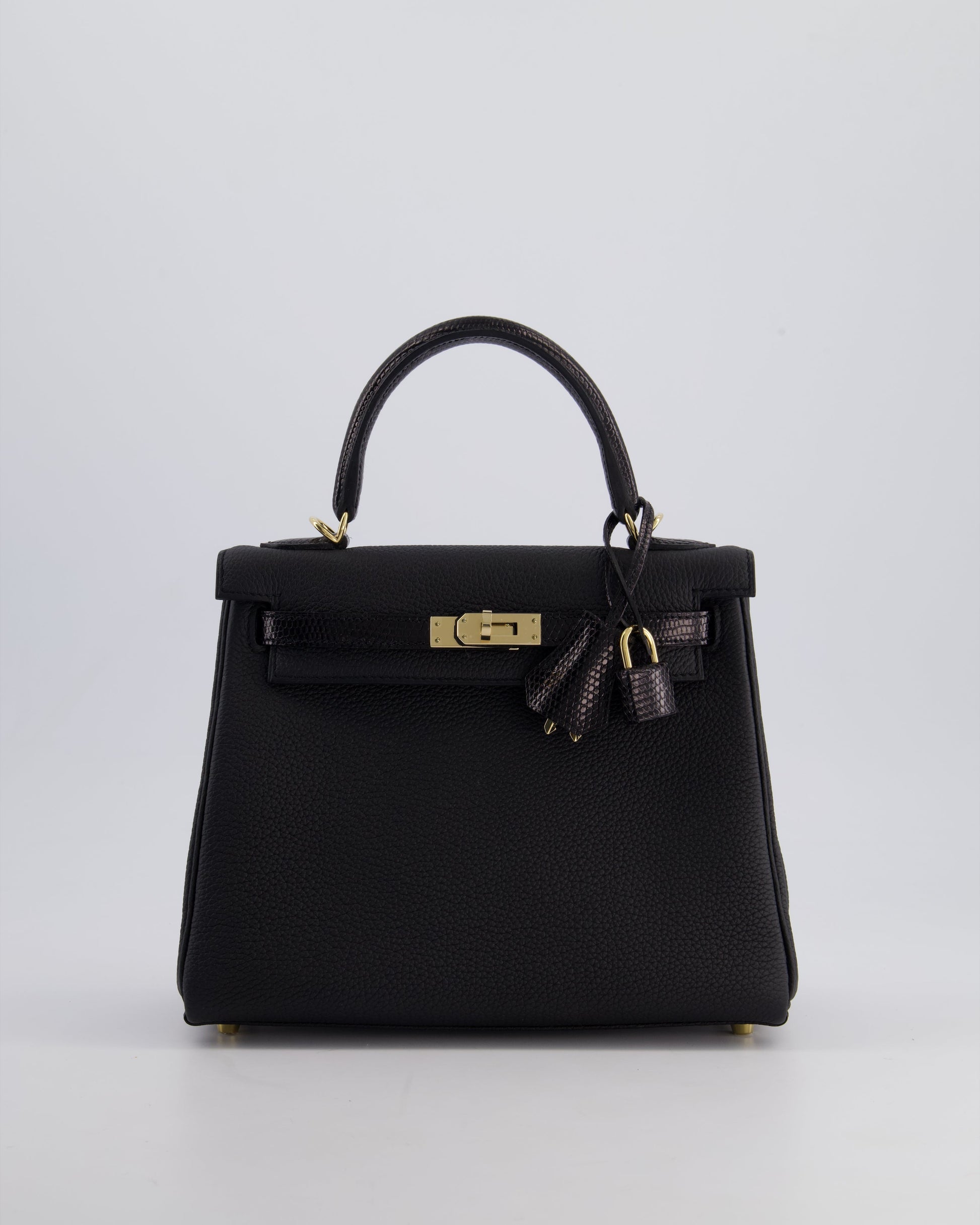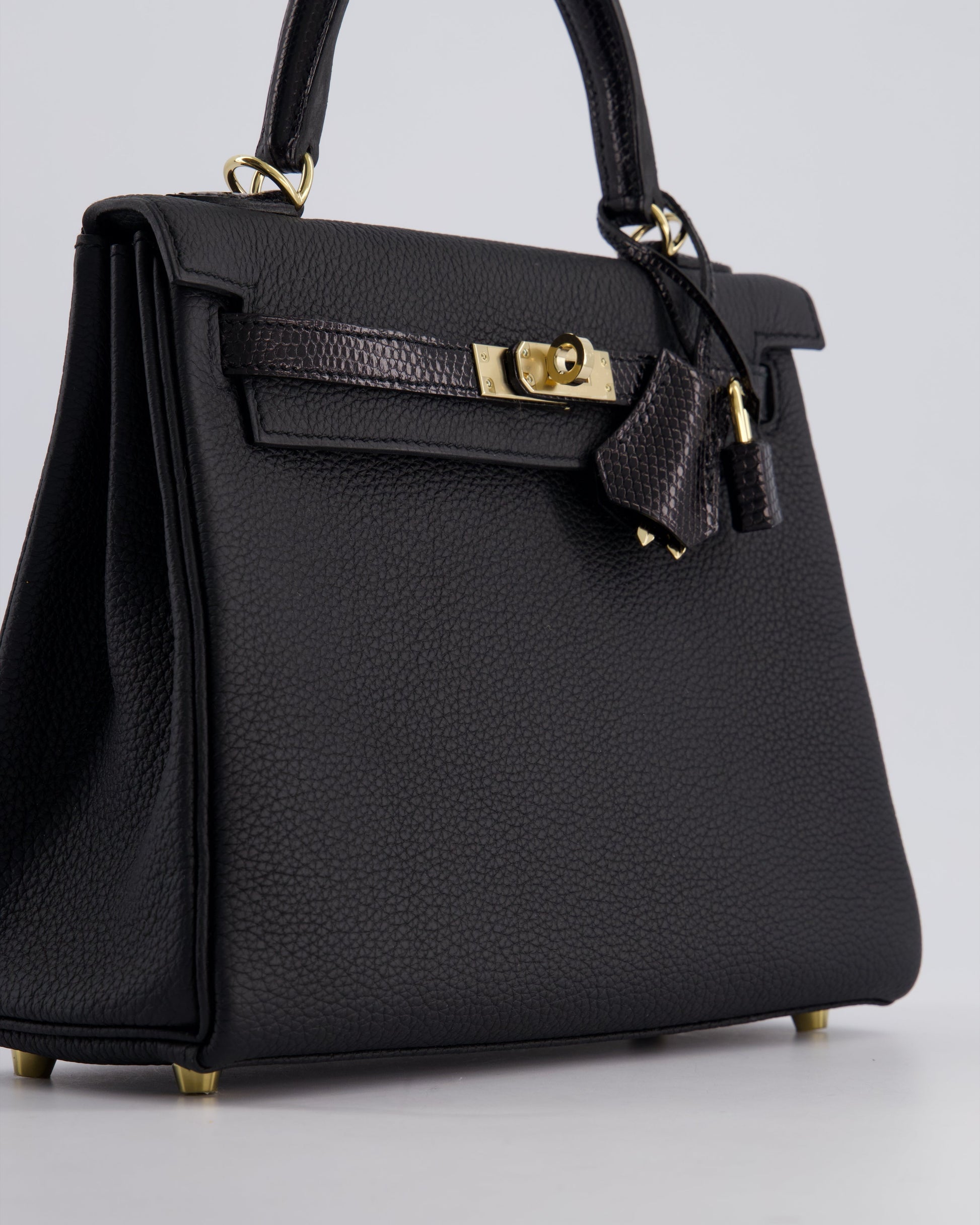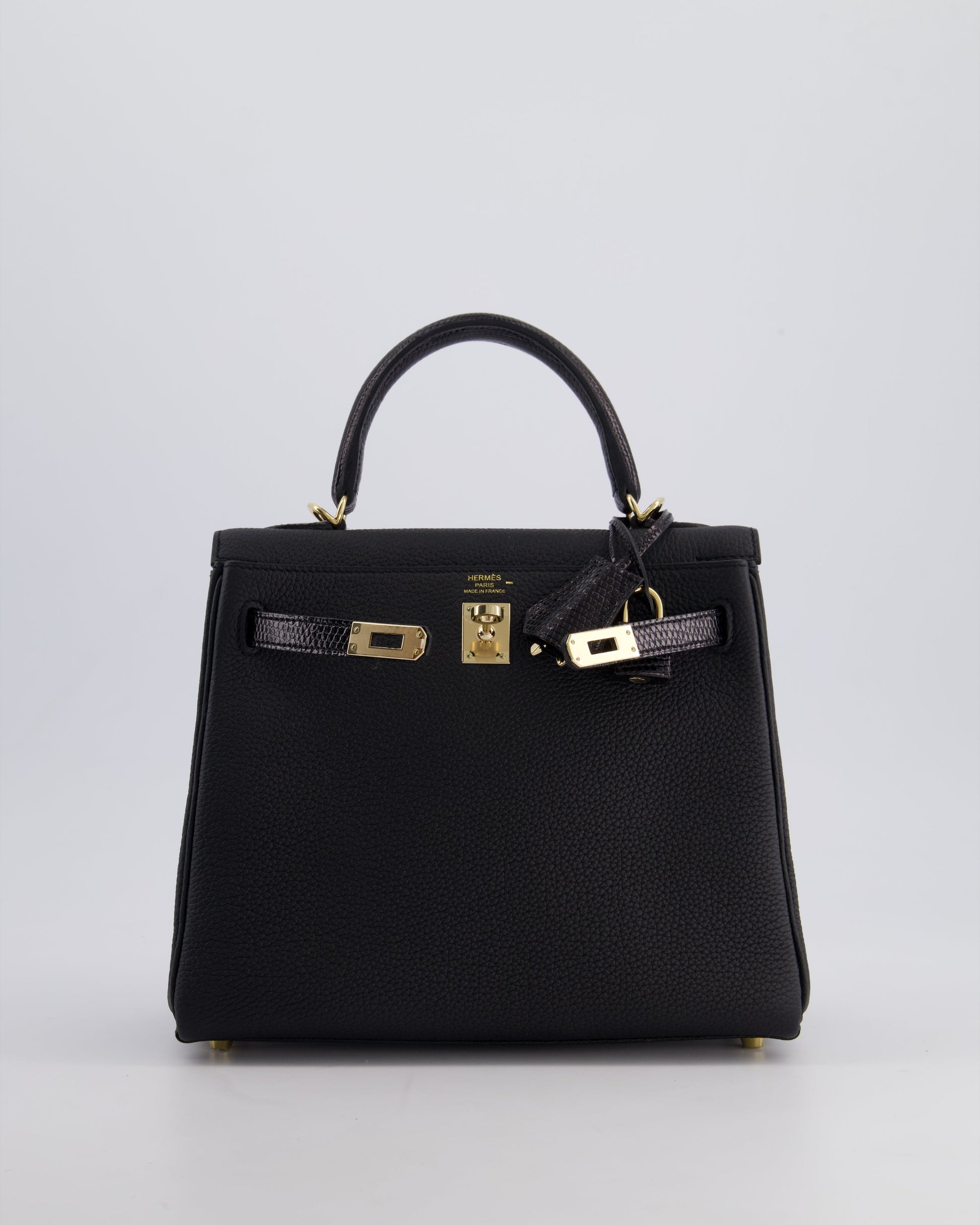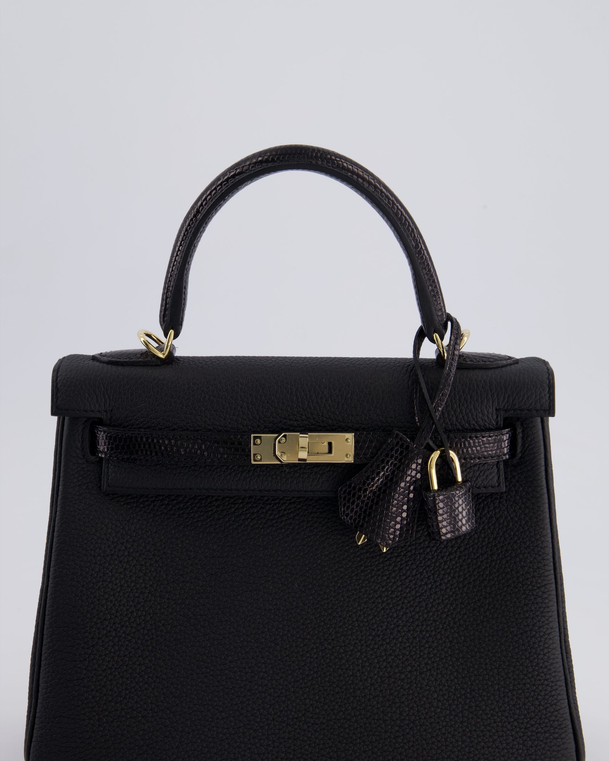 *RARE* Hermès Kelly Touch Retourne 25cm Bag in Noir Togo leather and Lizard with Permabrass Hardware