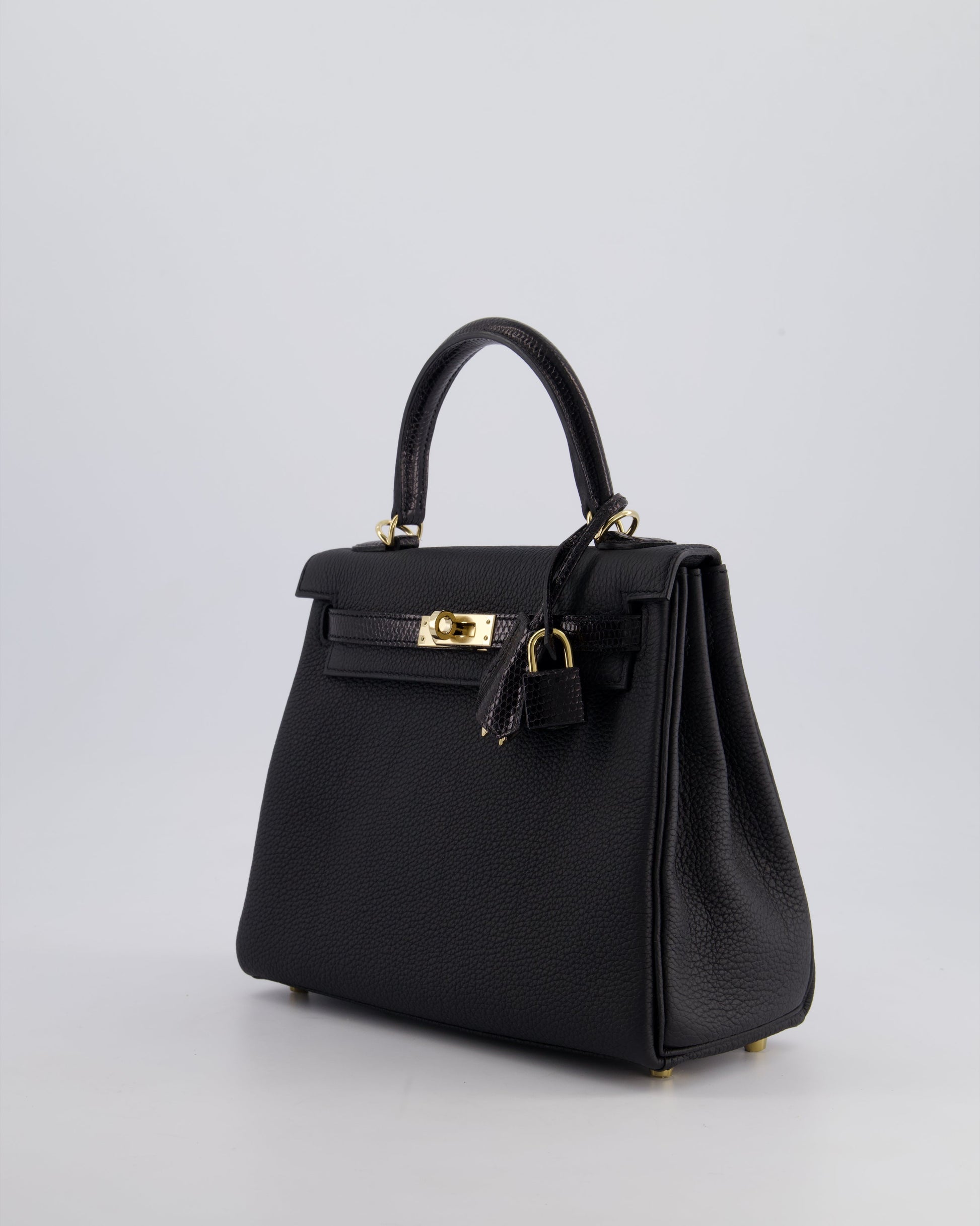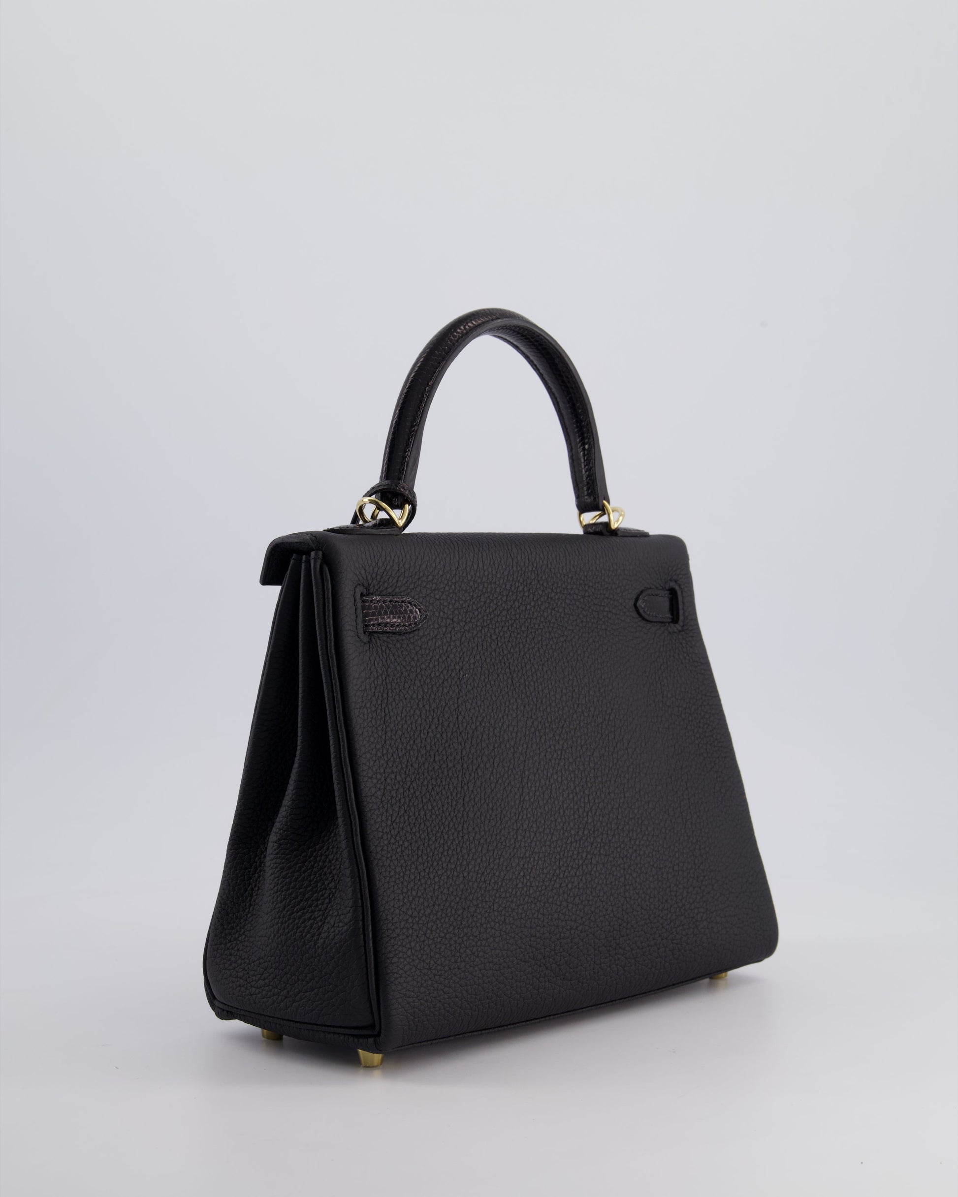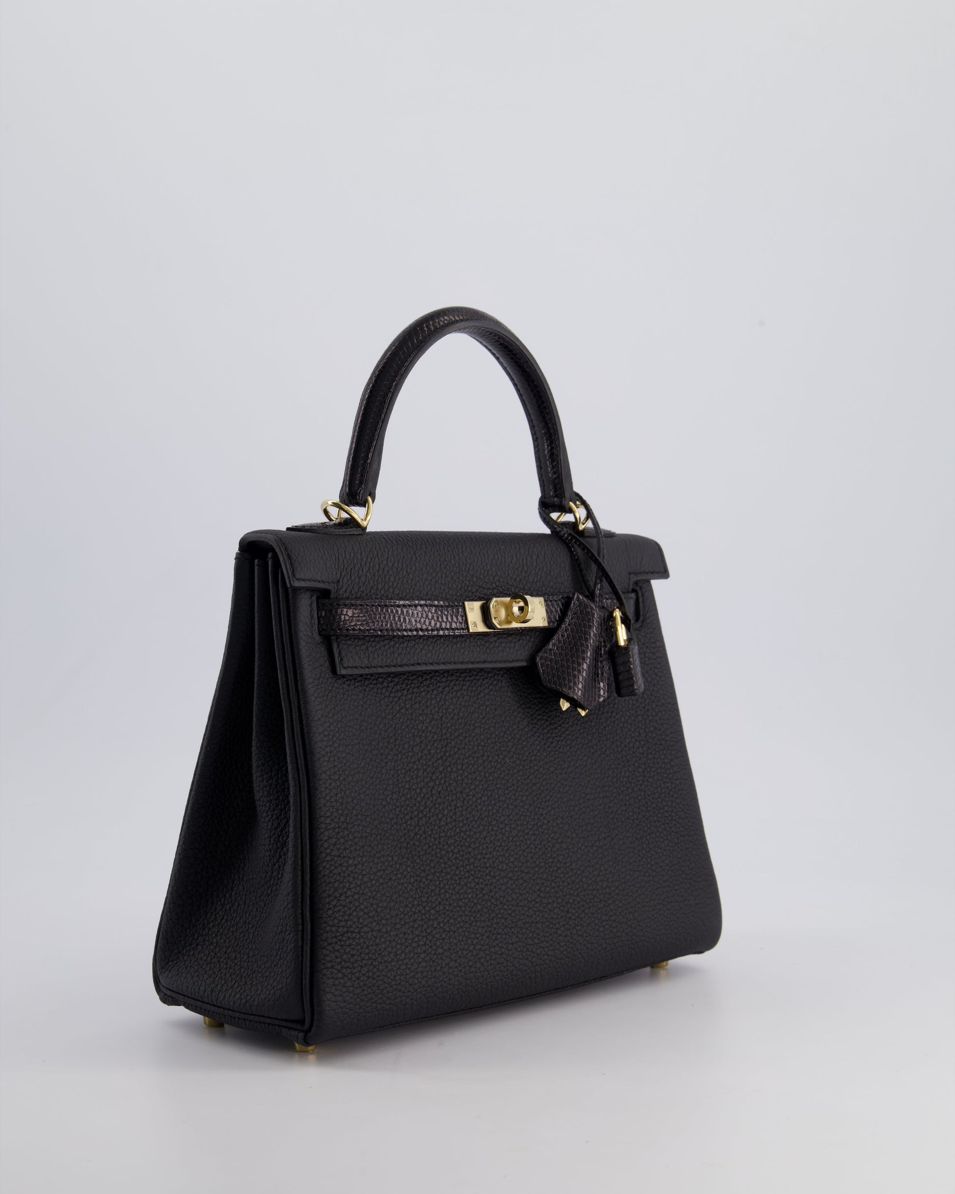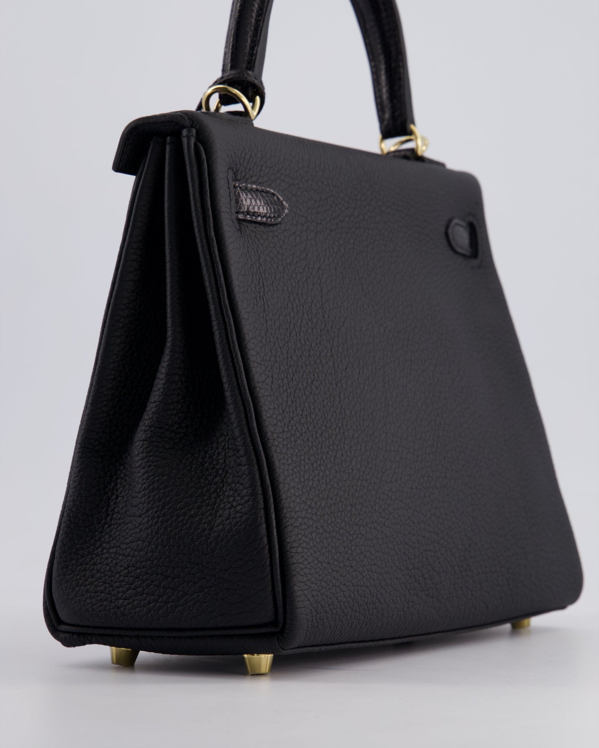*RARE* Hermès Kelly Touch Retourne 25cm Bag in Noir Togo leather and Lizard with Permabrass Hardware