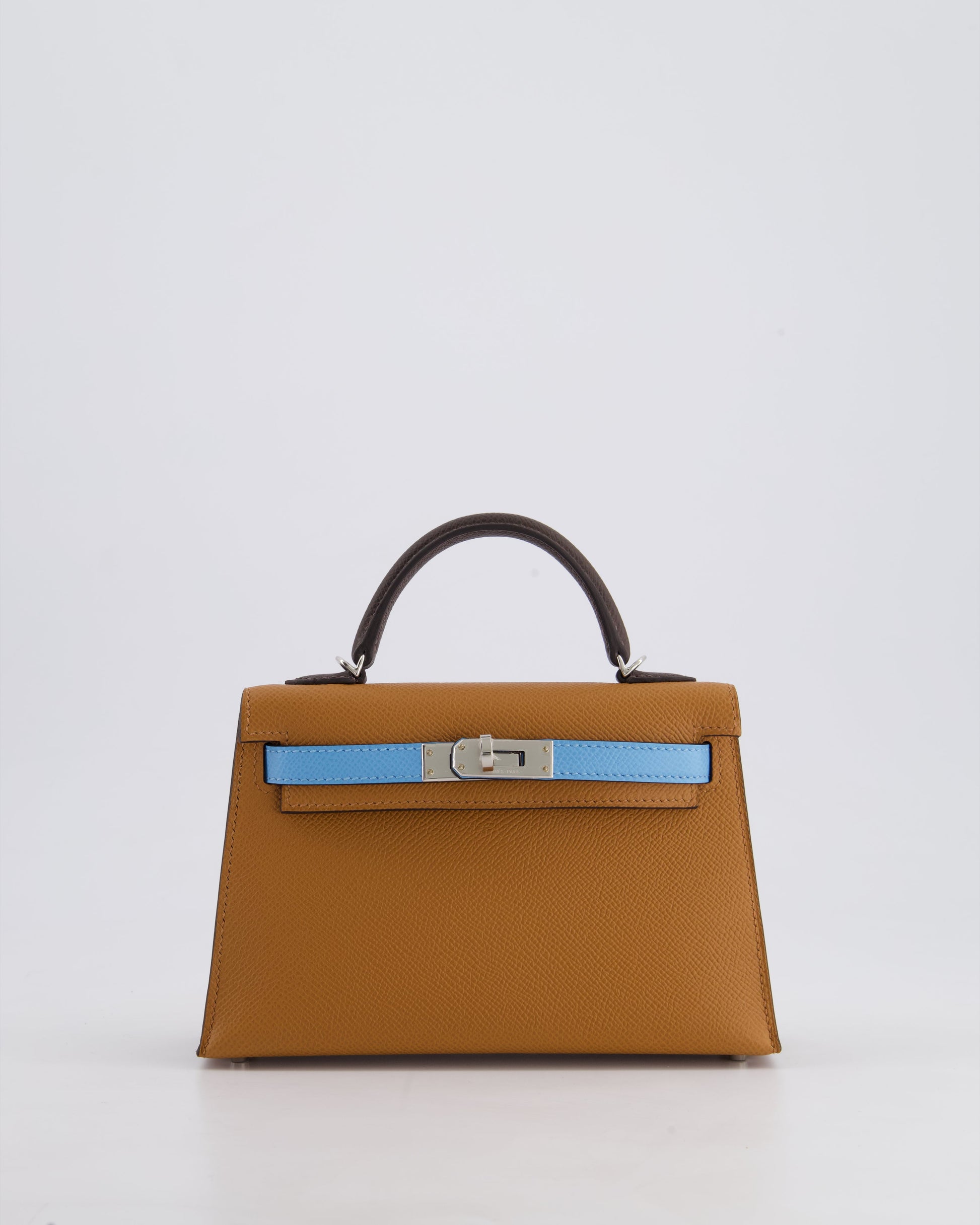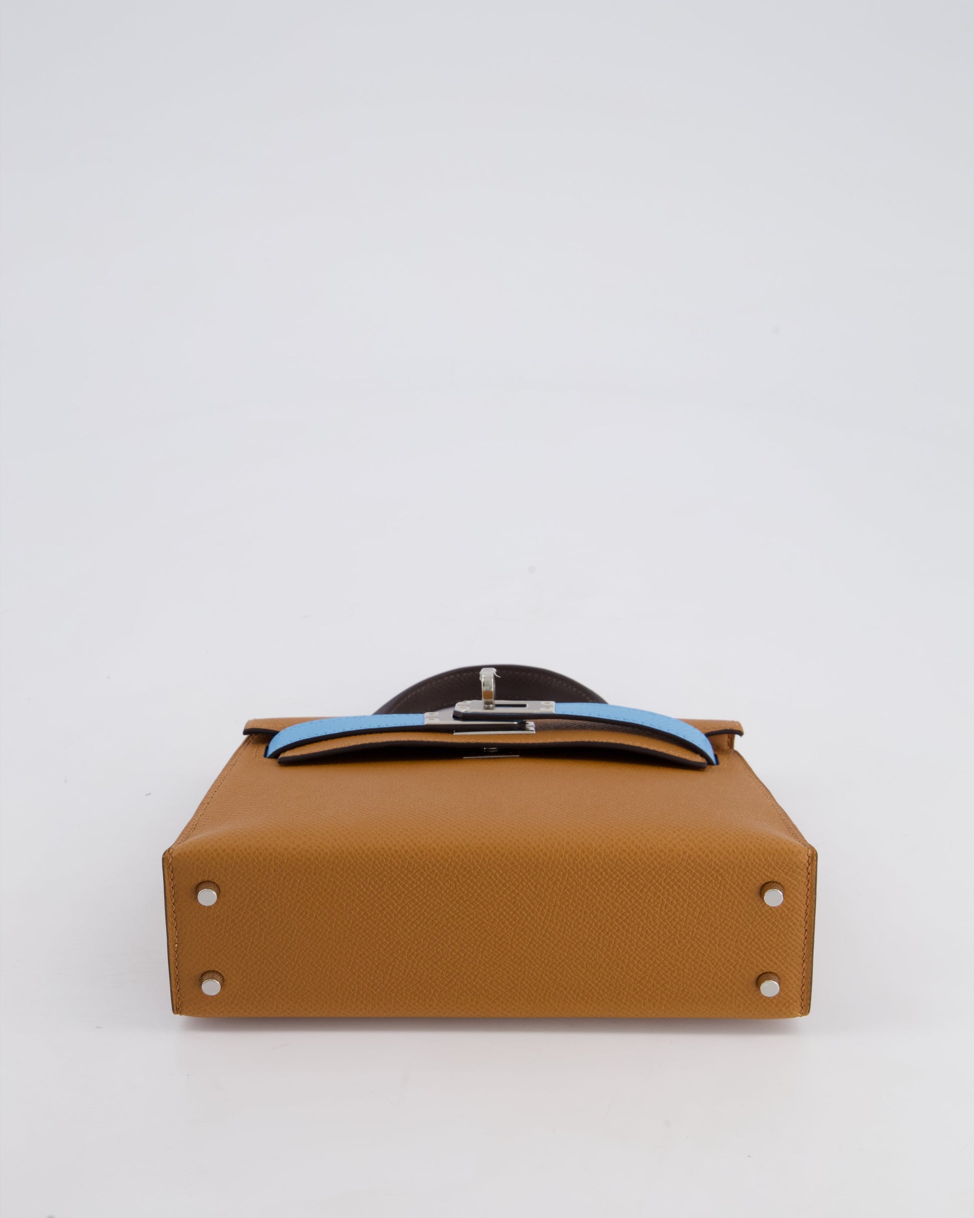 *RARE* Hermès Mini Kelly II Tricolour 20cm Bag In Gold, Ebene and Bleu Celeste Epsom Leather with Palladium Hardware