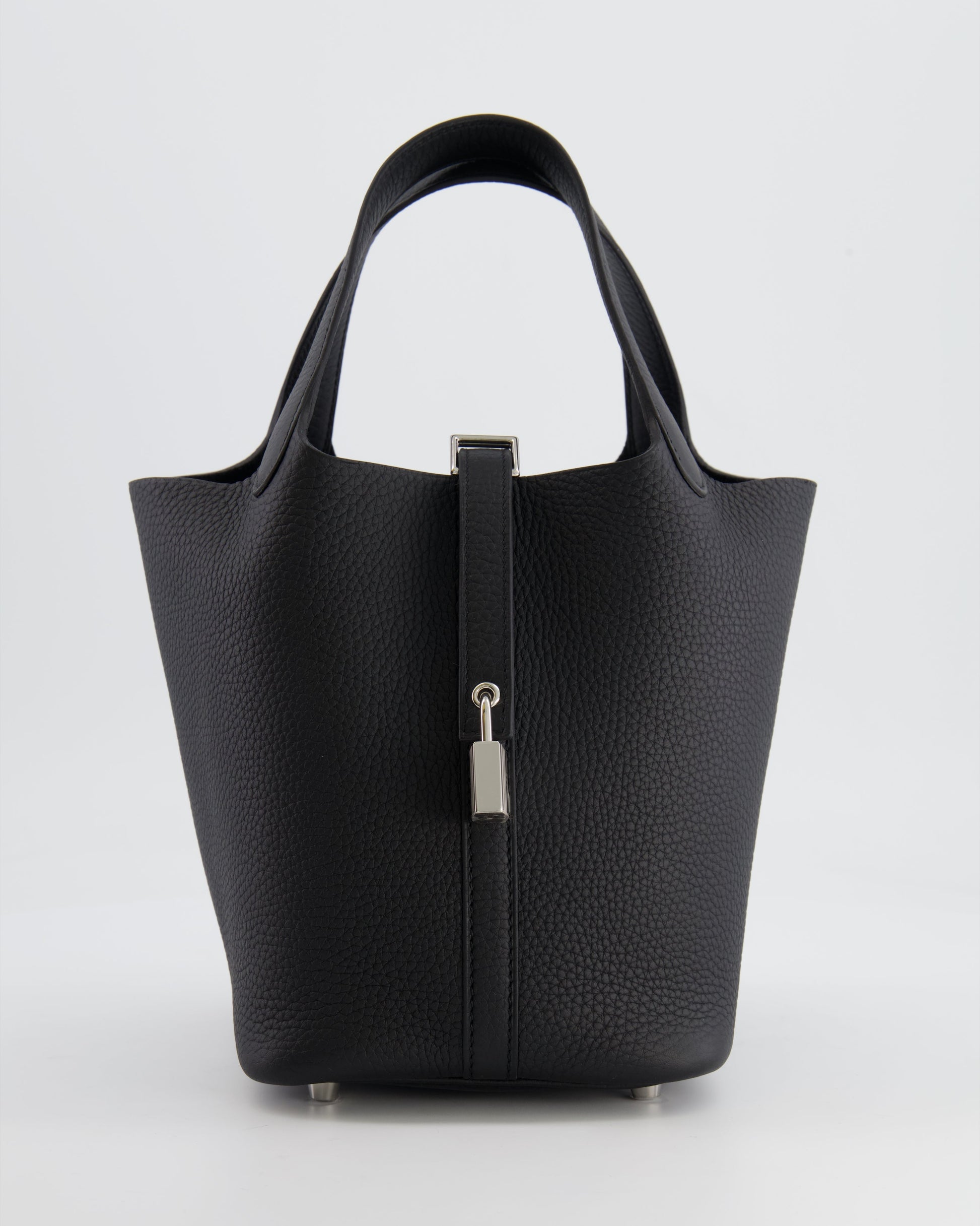 *RARE* Hermes Picotin 18cm Lock Bag in Noir Clemence Leather with Palladium Hardware