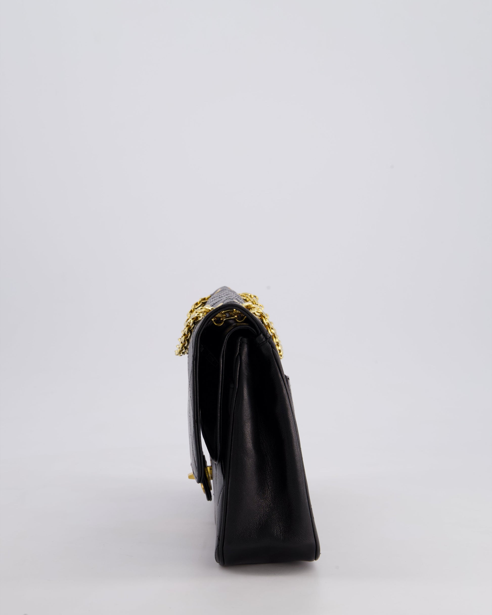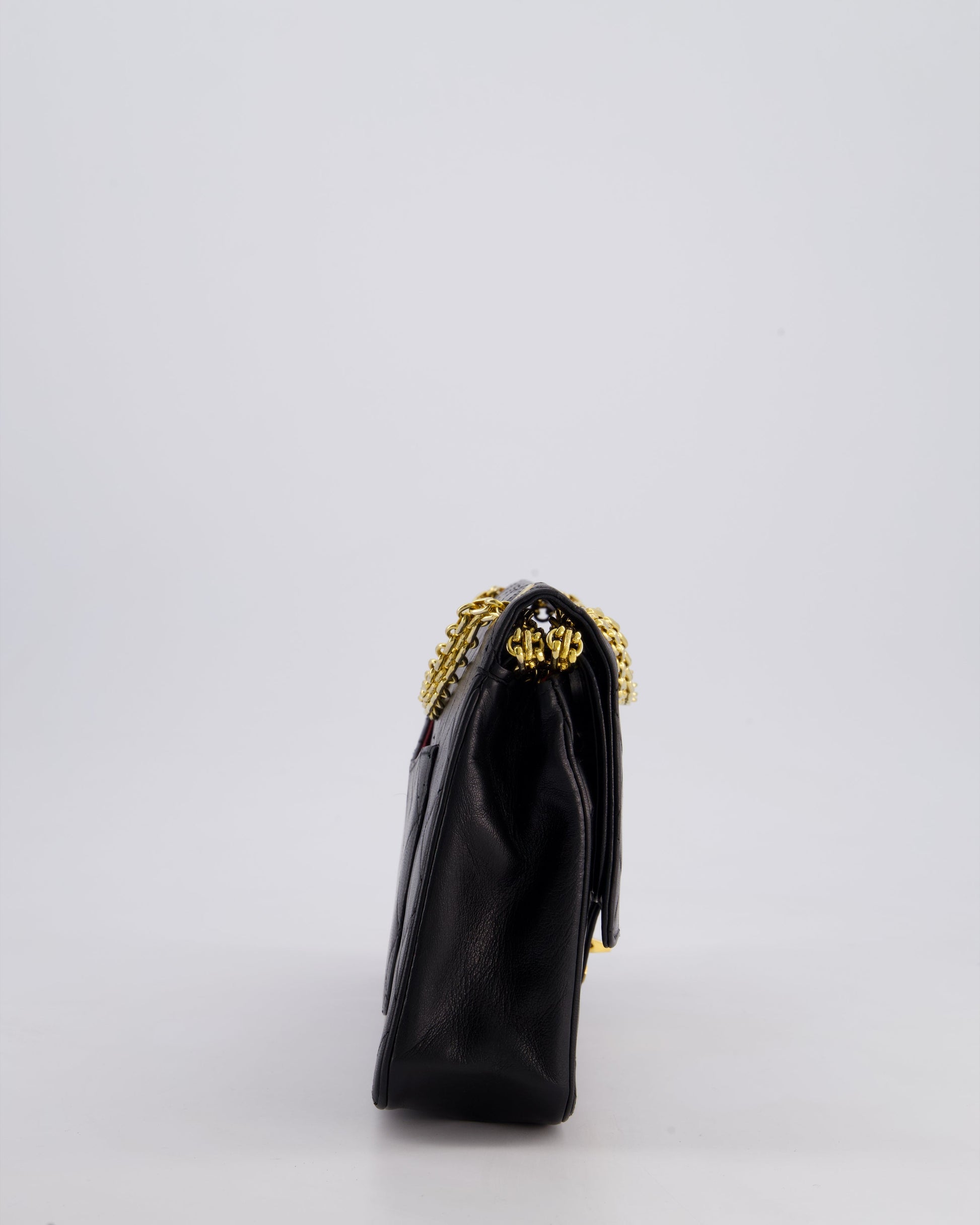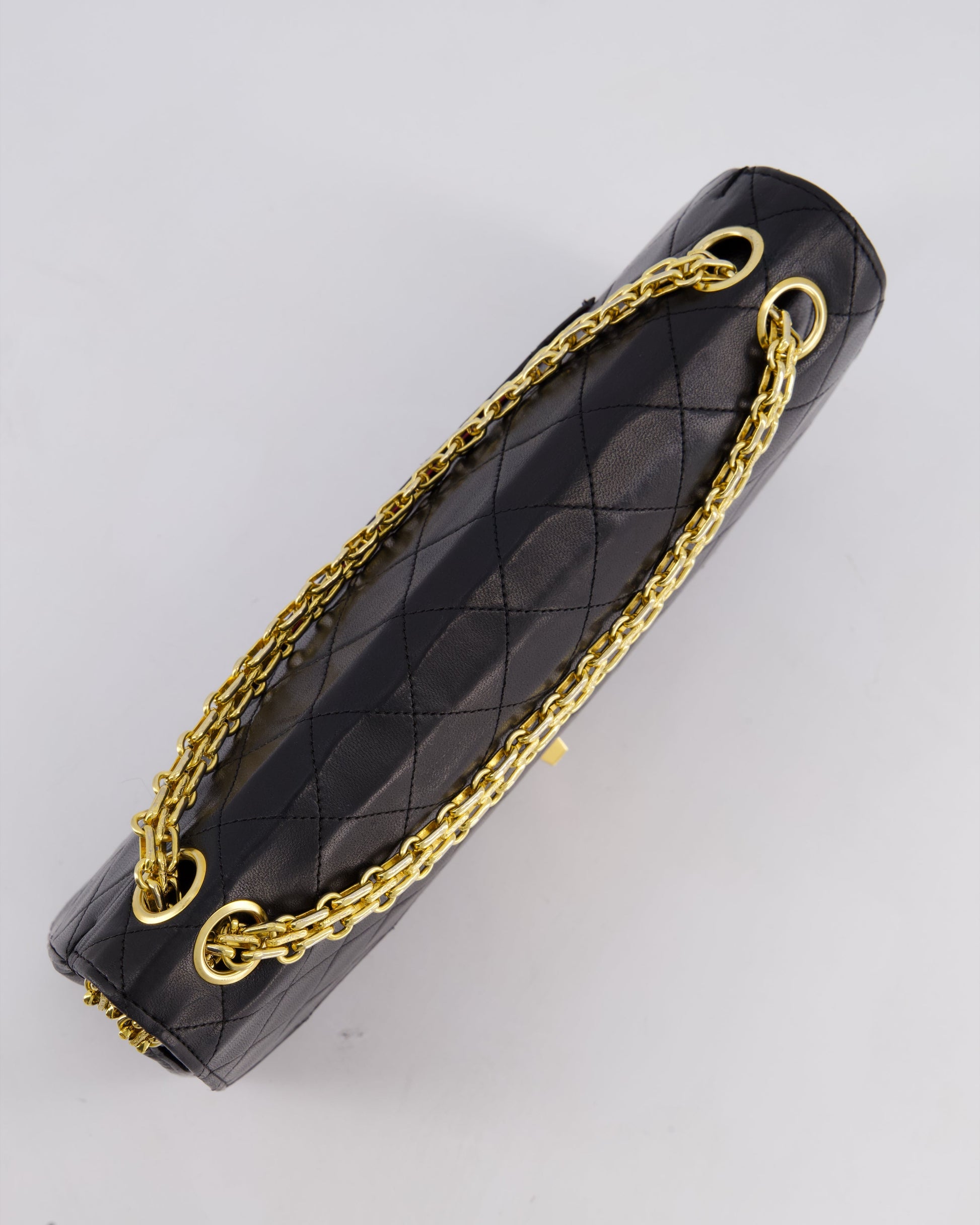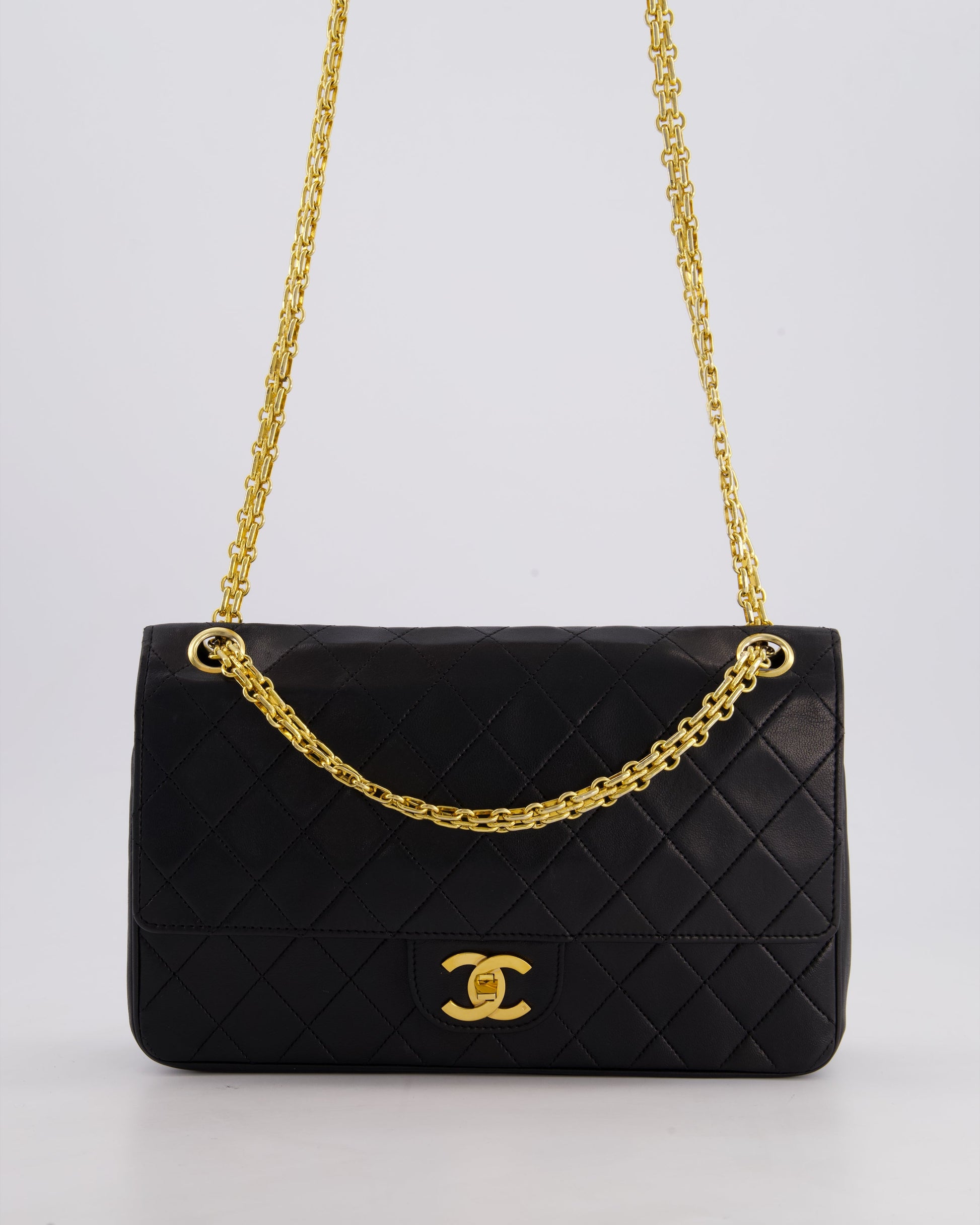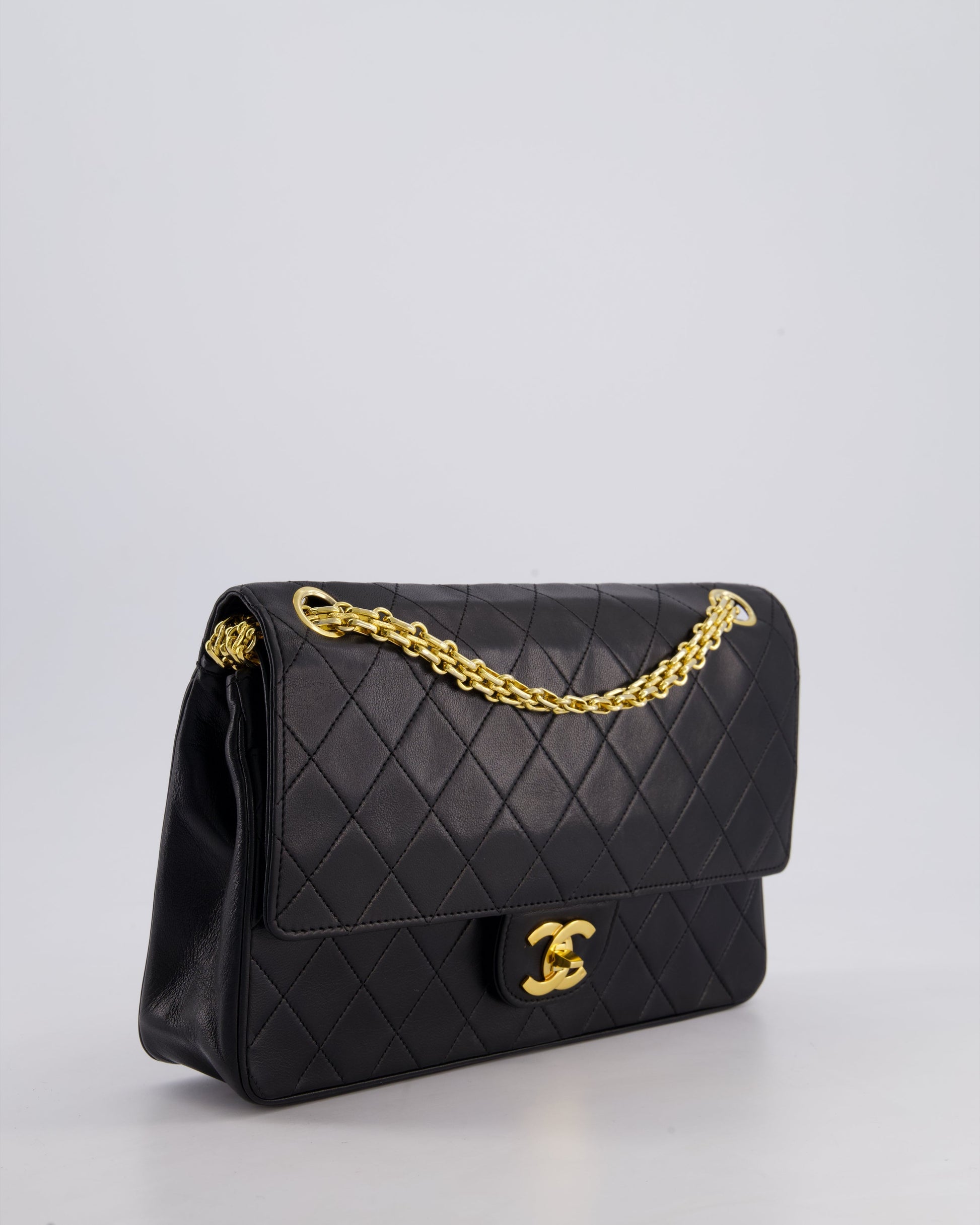 *RARE VINTAGE* Chanel Vintage Black Medium Classic Double Flap Bag in Lambskin Leather with 24k Gold Hardware and Mademoiselle Chain