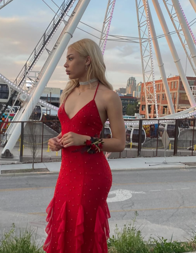 Red Exquisite Beaded Ruffle Flowy Chiffon Formal Party Dress Prom Dress Date Dress SH3532